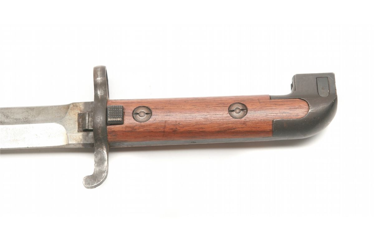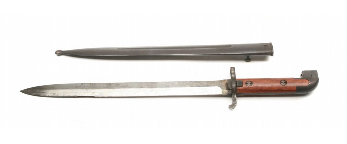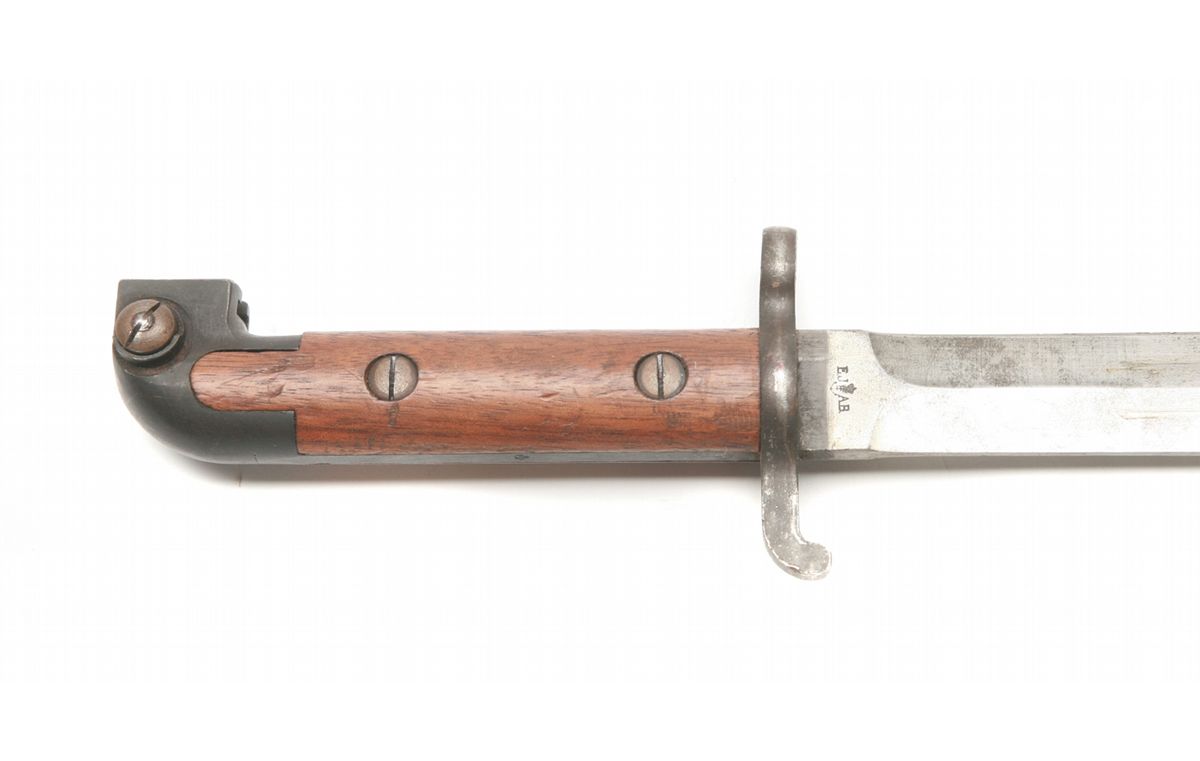 18" overall, 13" blade - right ricasso marked E.J. crown/anchor AB - light freckling to blade - wood handles with some handling marks - metal sheath with some freckling - crown proof on finial - numbered brass tag - non-ffl - 25CRRMA068