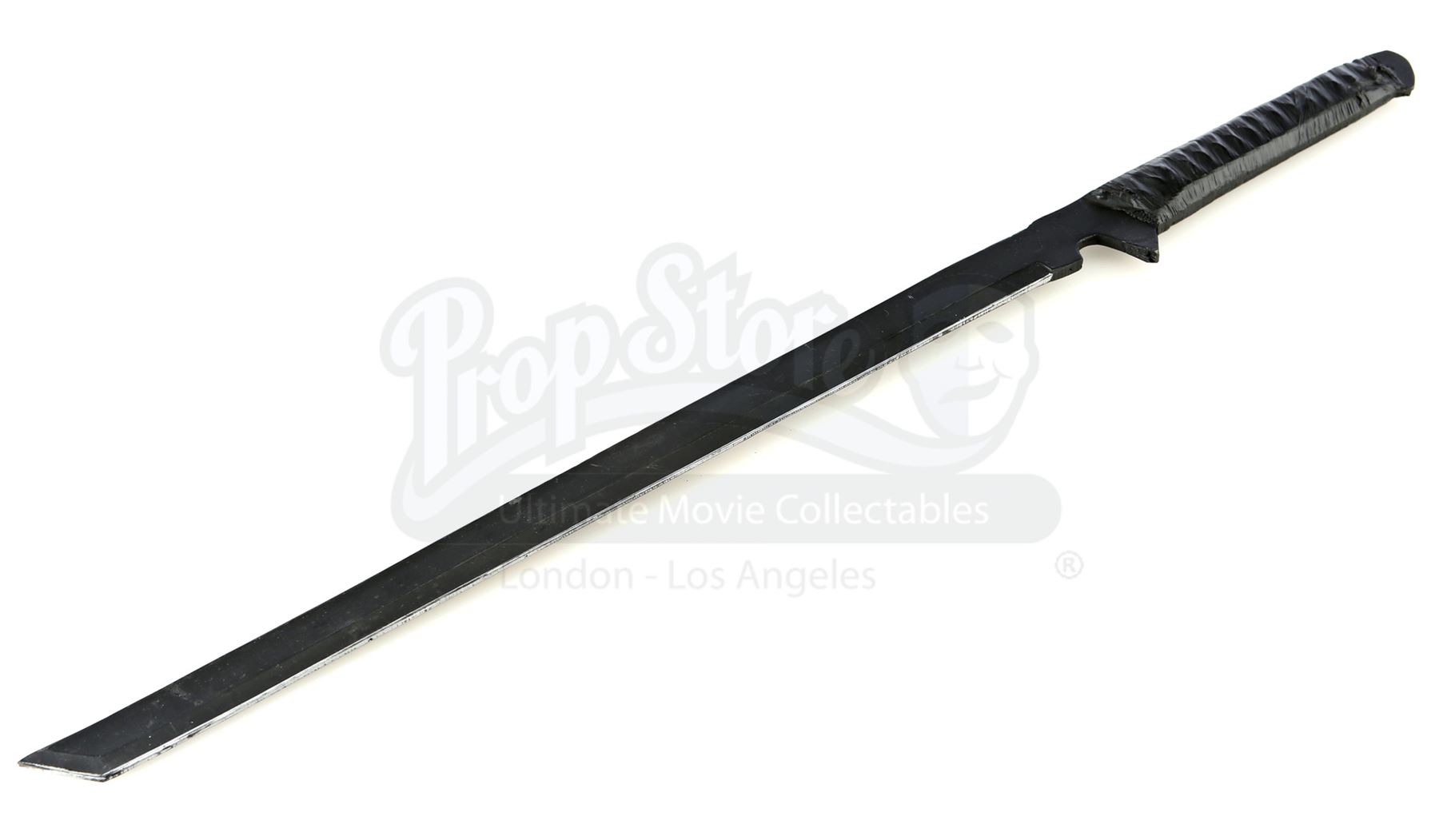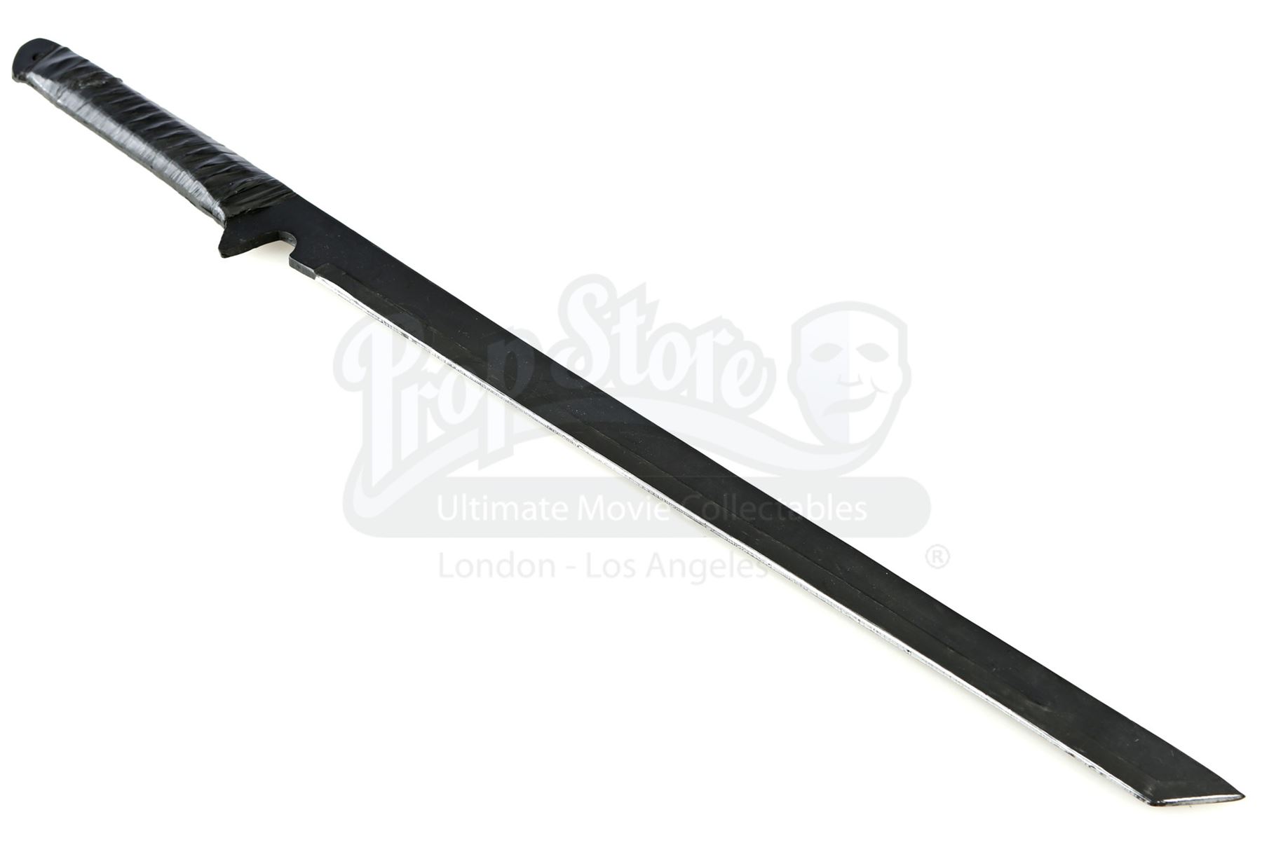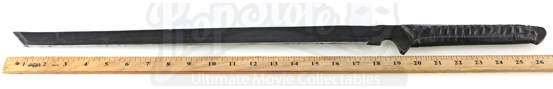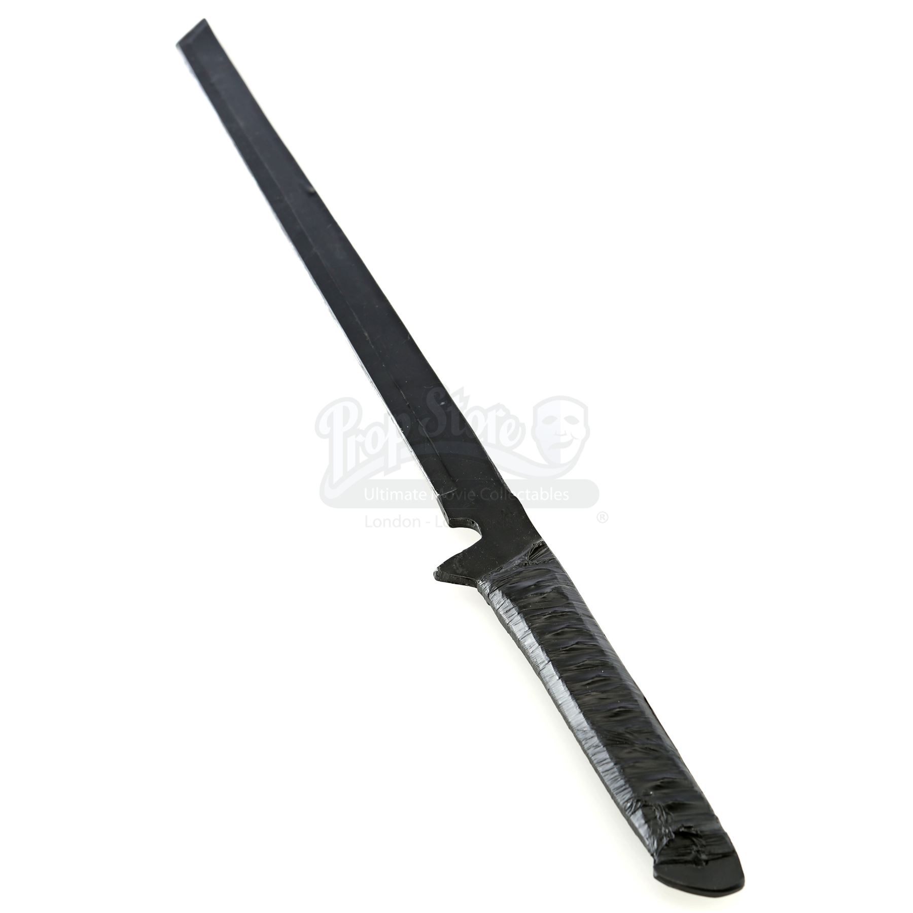 Stick’s urethane blade from the episode ‘Guilty as Sin’ (208) of Marvel's Daredevil. In the episode, Stick uses his blade to protect Matt Murdock and Elektra Natchios from The Hand’s agents. This weapon has a woven polyester handle wrapped with tape. It is in good overall condition, with minor wear from production.
