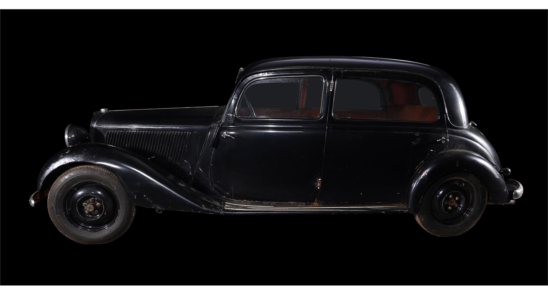 This black Mercedes 170 was one of two used for filming. Originally produced in the mid-to-late 1940s, it has been modified for the production, with several inches added in the rear footwell; extended rear doors; and a Perspex& reg; windscreen. It has also been reglazed and retrimmed. The engine is a modern Ford Zetec engine with a stunt fuel tank, while the car also features a drifting handbrake lever, a brown leather interior and rear-hinged (or "suicide") front doors.