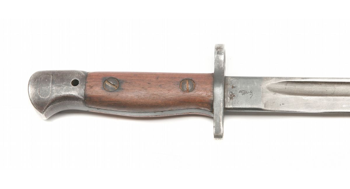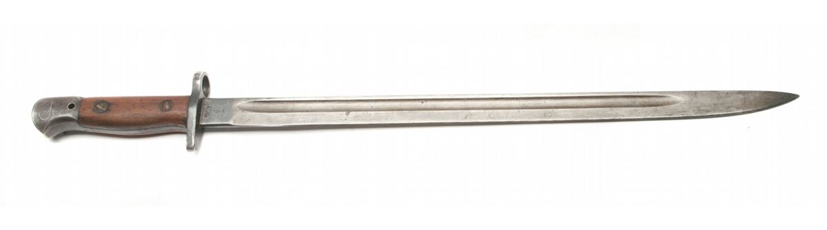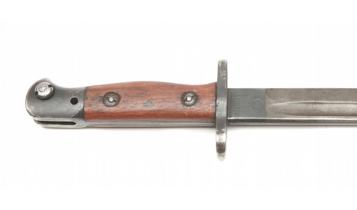 Pattern 1907 bayonet for SMLE series rifles (such as British Enfield No. 1 Mk III) - left ricasso marked crown/1907/5 17/Wilkinson - right ricasso marked with various proofs including broad arrow acceptance, bend test, & '23 - wood grips in good condition - overall good condition - non-ffl - 25BBBRCKS053