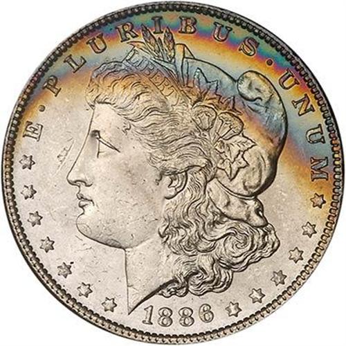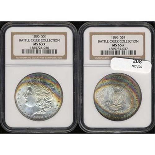 Lot of Two Toned Battle Creek Morgans.. Obverse toned 1886 NGC MS63* & Reverse toned 1886 NGC MS65*. (#7166)<p><i>from The Battle Creek Collection, Part III</i>