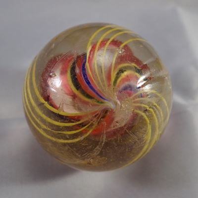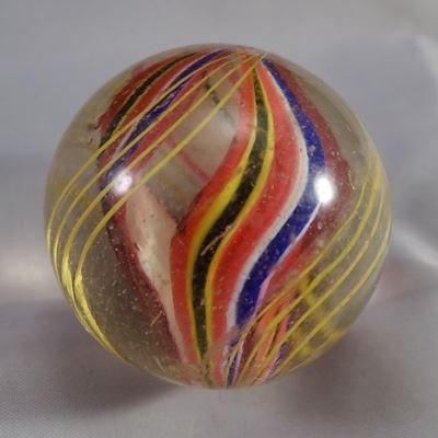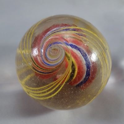 Pretty Divided Core Swirl. A couple of tiny chips and tiny subsurface moon. Germany, circa 1860-1920. 1-9/16". Near Mint(+) (8.8).