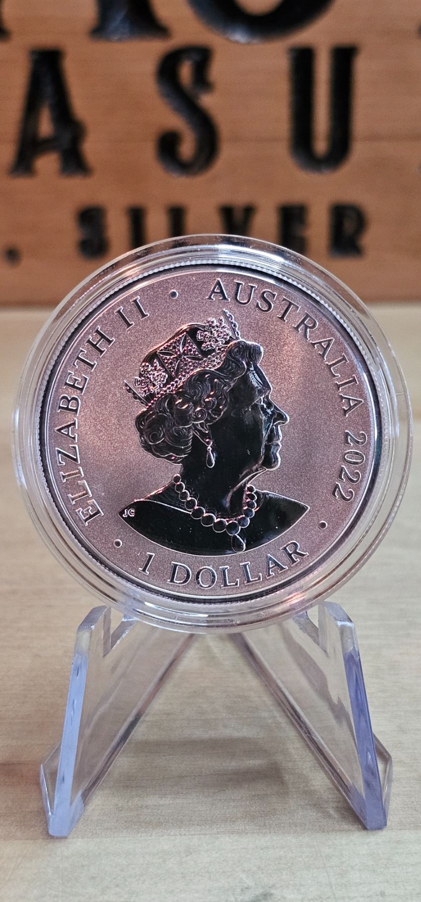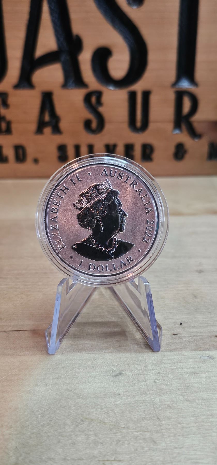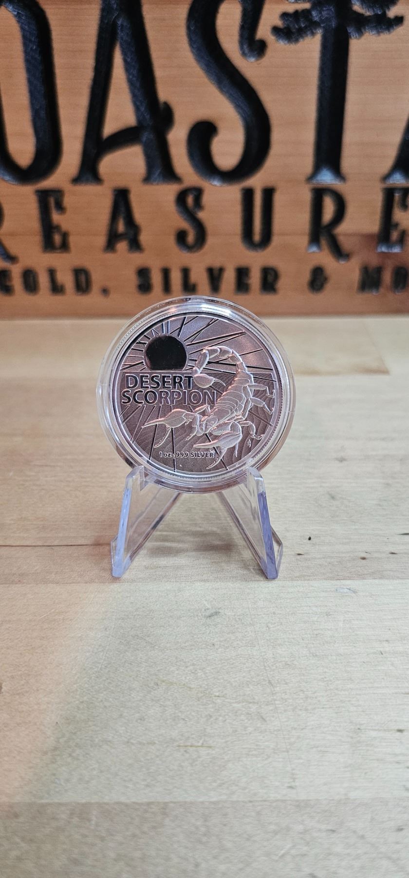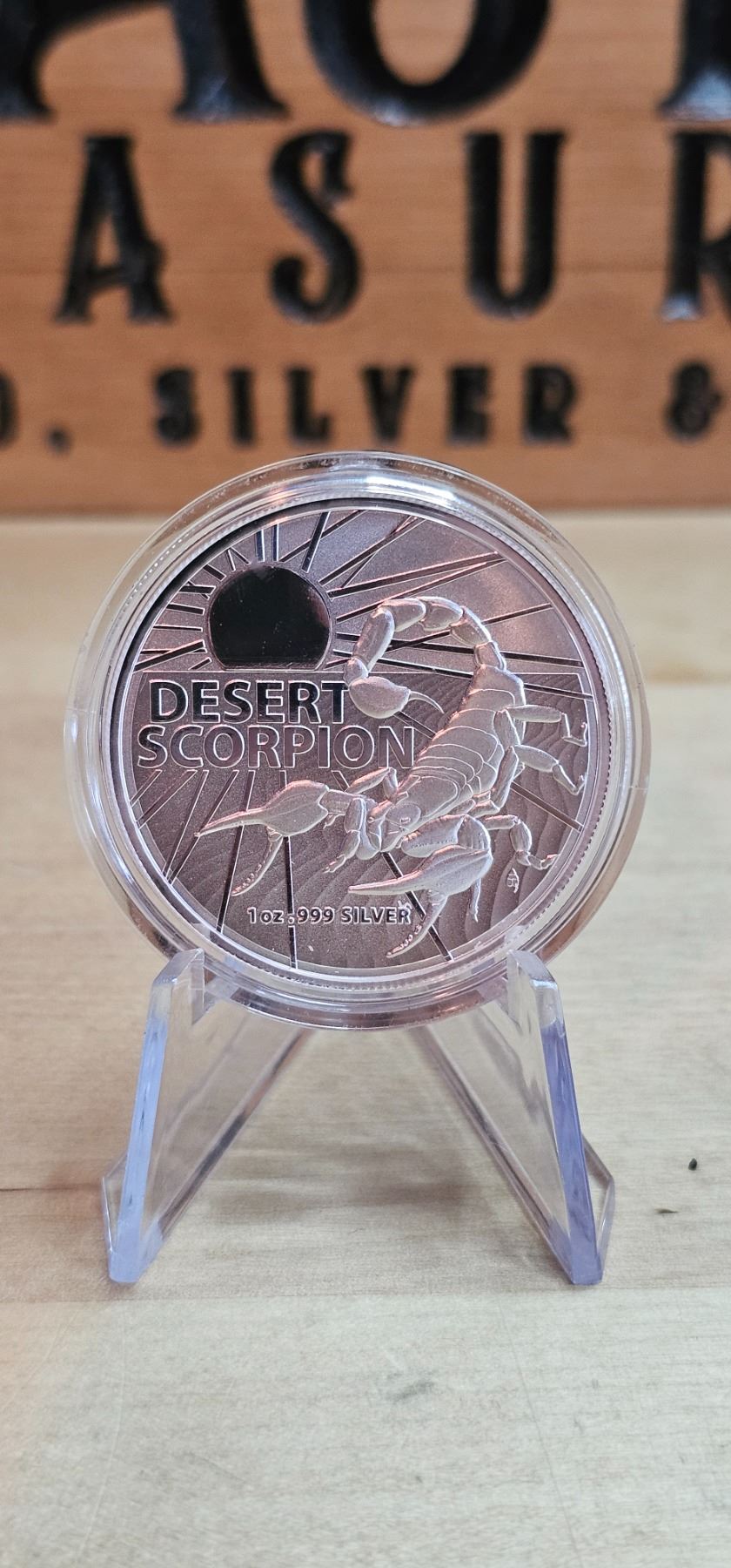 The 2022 1 Oz Australia's Most Dangerous: Desert Scorpion Silver Coin is made from .999 fine silver and features a detailed design of a desert scorpion. The obverse displays Queen Elizabeth II and the denomination of $1 (AUD). This limited mintage coin is a striking addition for collectors and wildlife enthusiasts.