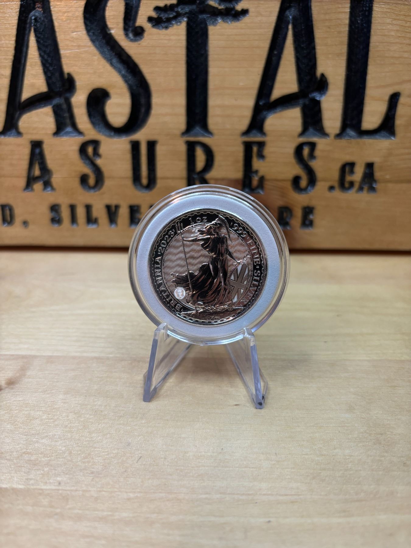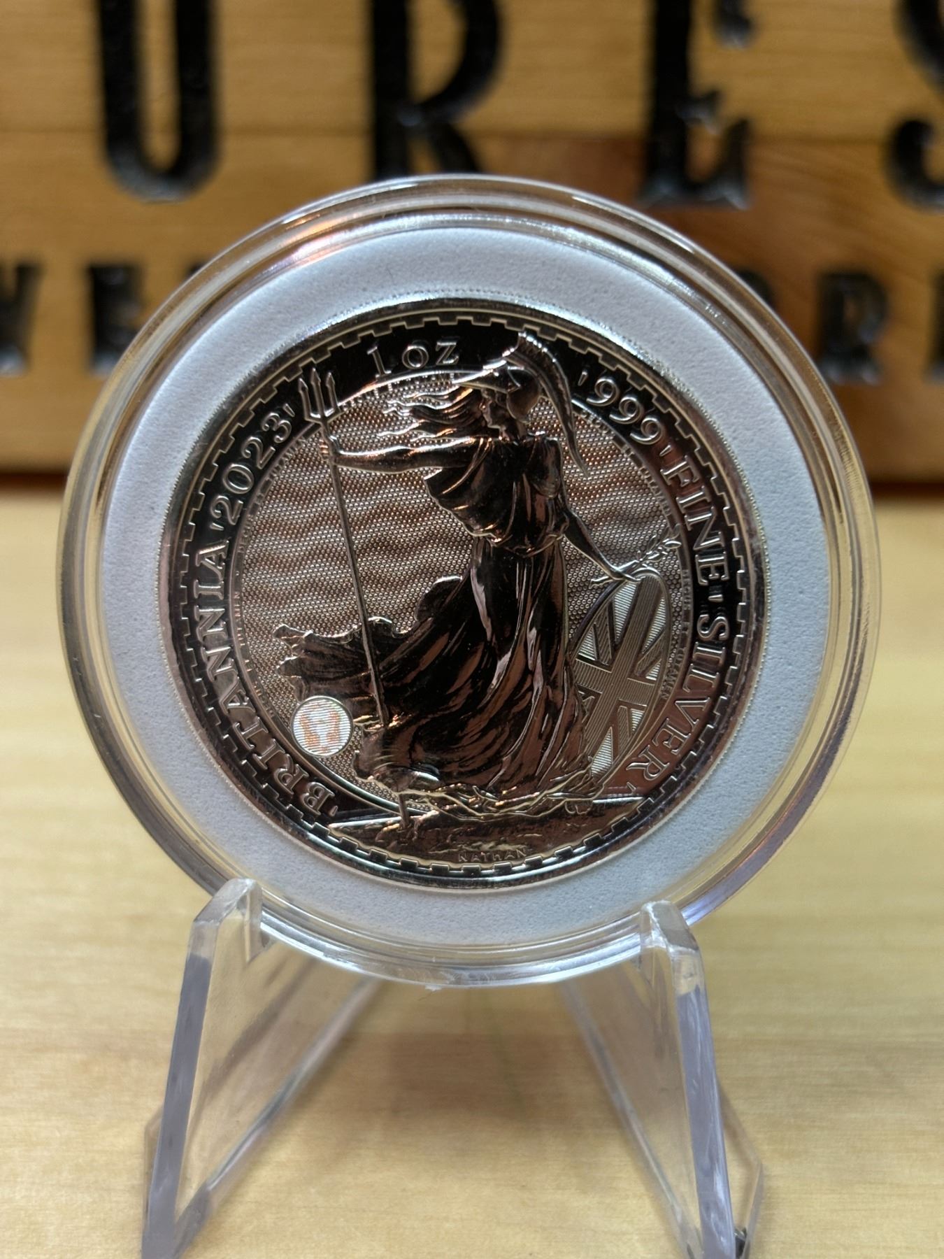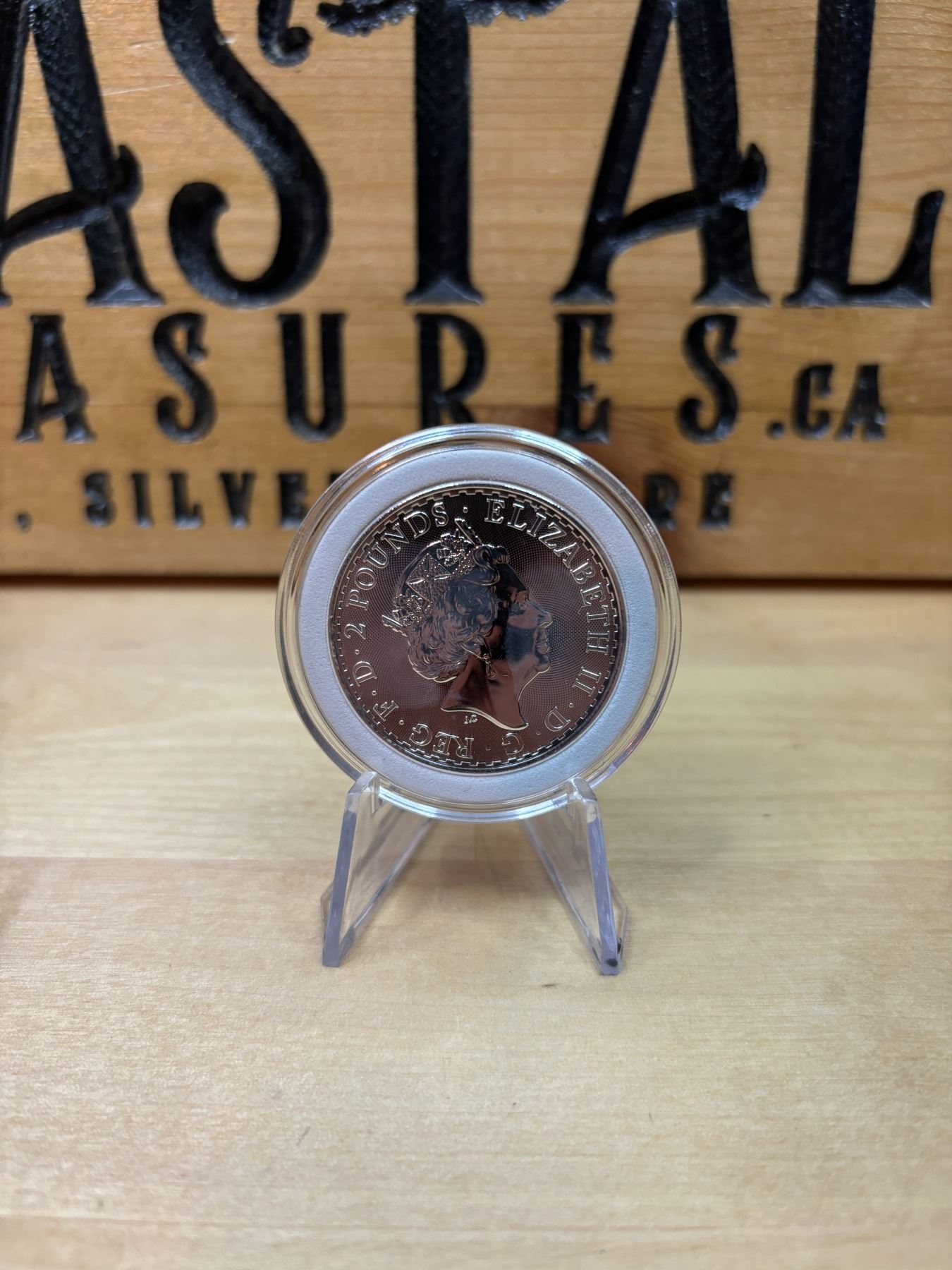 The 1 oz Britannia 2023 Silver Coin is part of the popular Britannia series, produced by the Royal Mint. It contains 1 ounce of .999 fine silver and features the iconic image of Britannia, symbolizing strength and resilience. The 2023 edition features an updated design with enhanced security features, such as a new background wave pattern and a holographic foil that changes in the light, making it more difficult to counterfeit. The coin is widely sought after by collectors and investors alike.