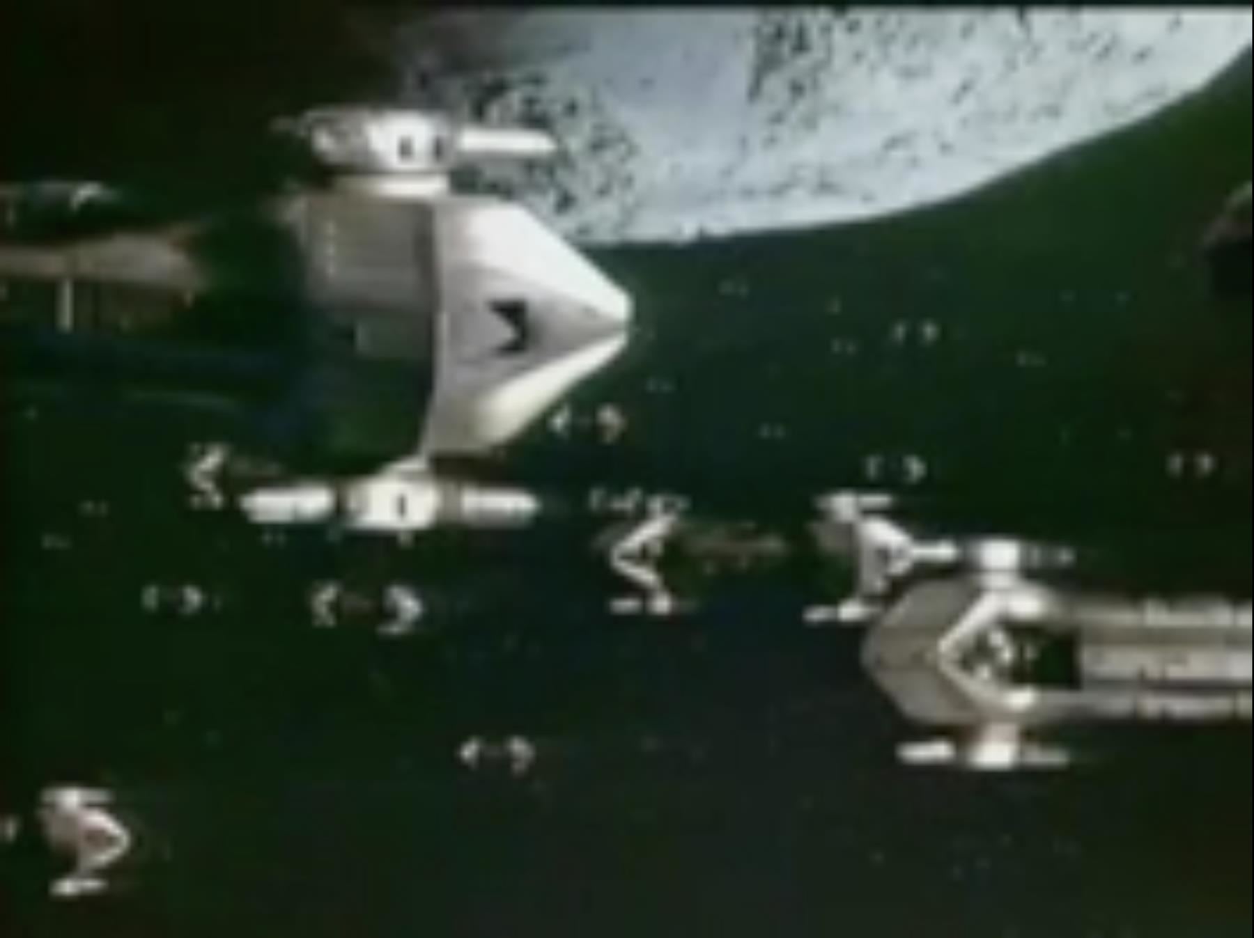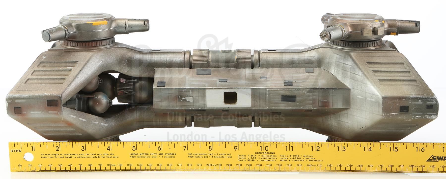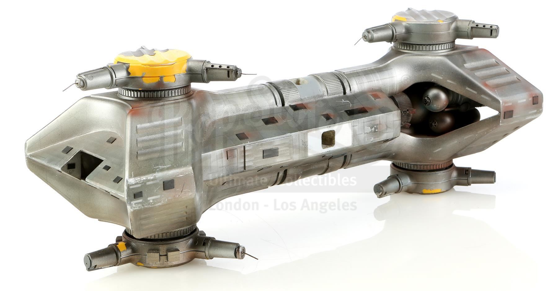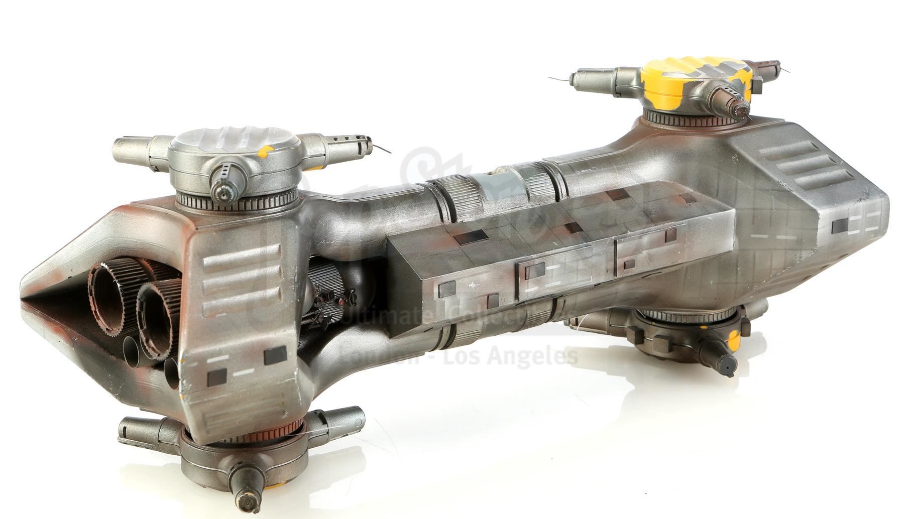 A Cyber-Warship miniature model from Season 25's third serial adventure "Silver Nemesis" of the BBC sci-fi series Doctor Who. Celebrating the 25th anniversary of the series, the serial featured several of the Doctor's (Sylvester McCoy) most infamous enemies, including the Cybermen, who surrounded Earth with their fleet of Cyber-Warships.
