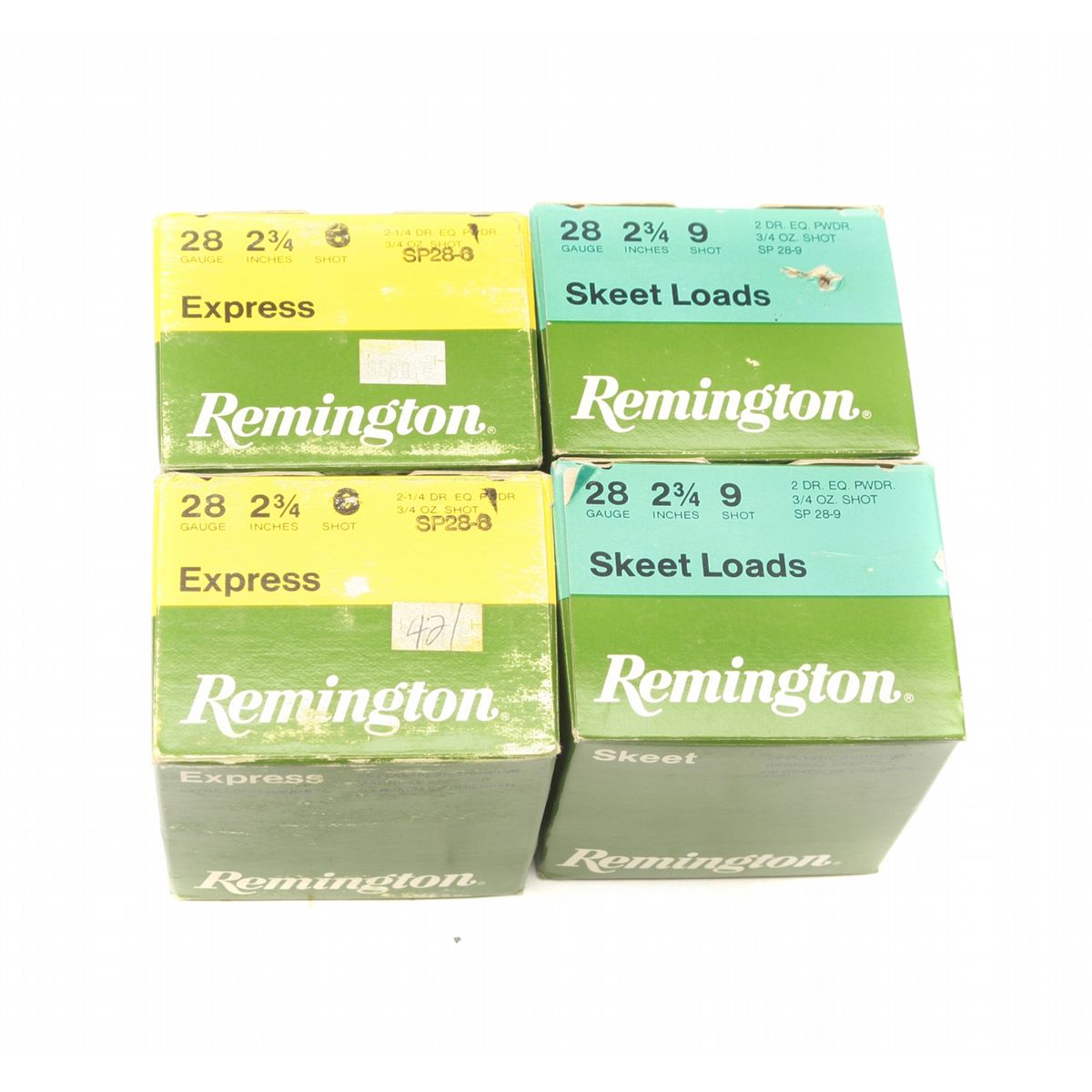 Four asst'd boxes of Remington 28 gauge shotshells - 50 rds of 2 3/4" #6 shot Express - 50 rds of 2 3/4" #9 shot Skeet Loads - all in factory box - non-ffl - 25TAGKS003