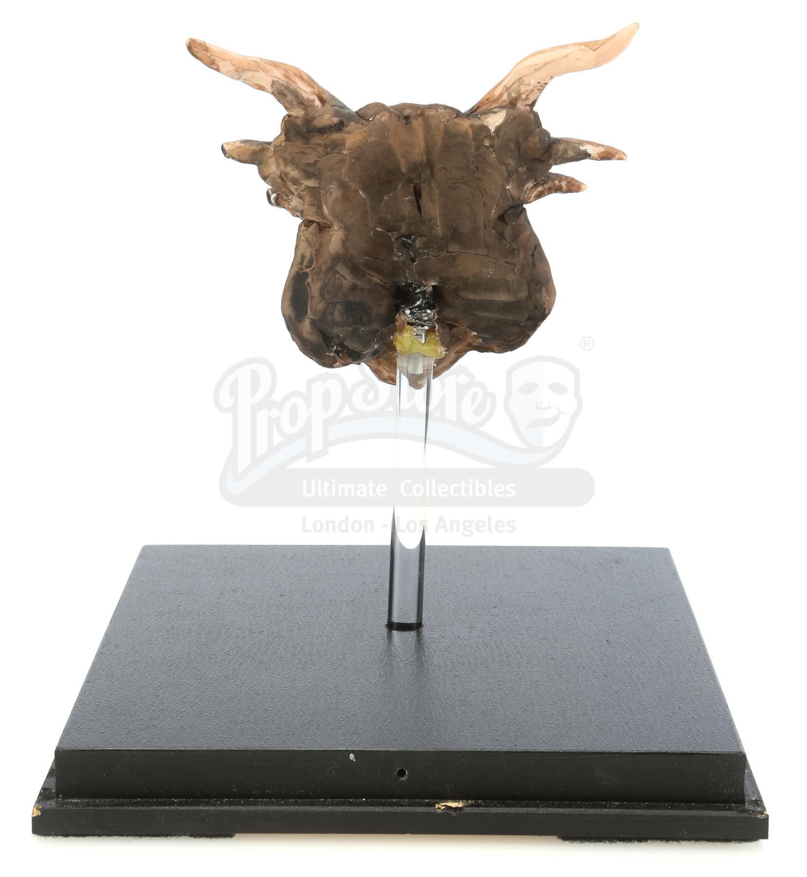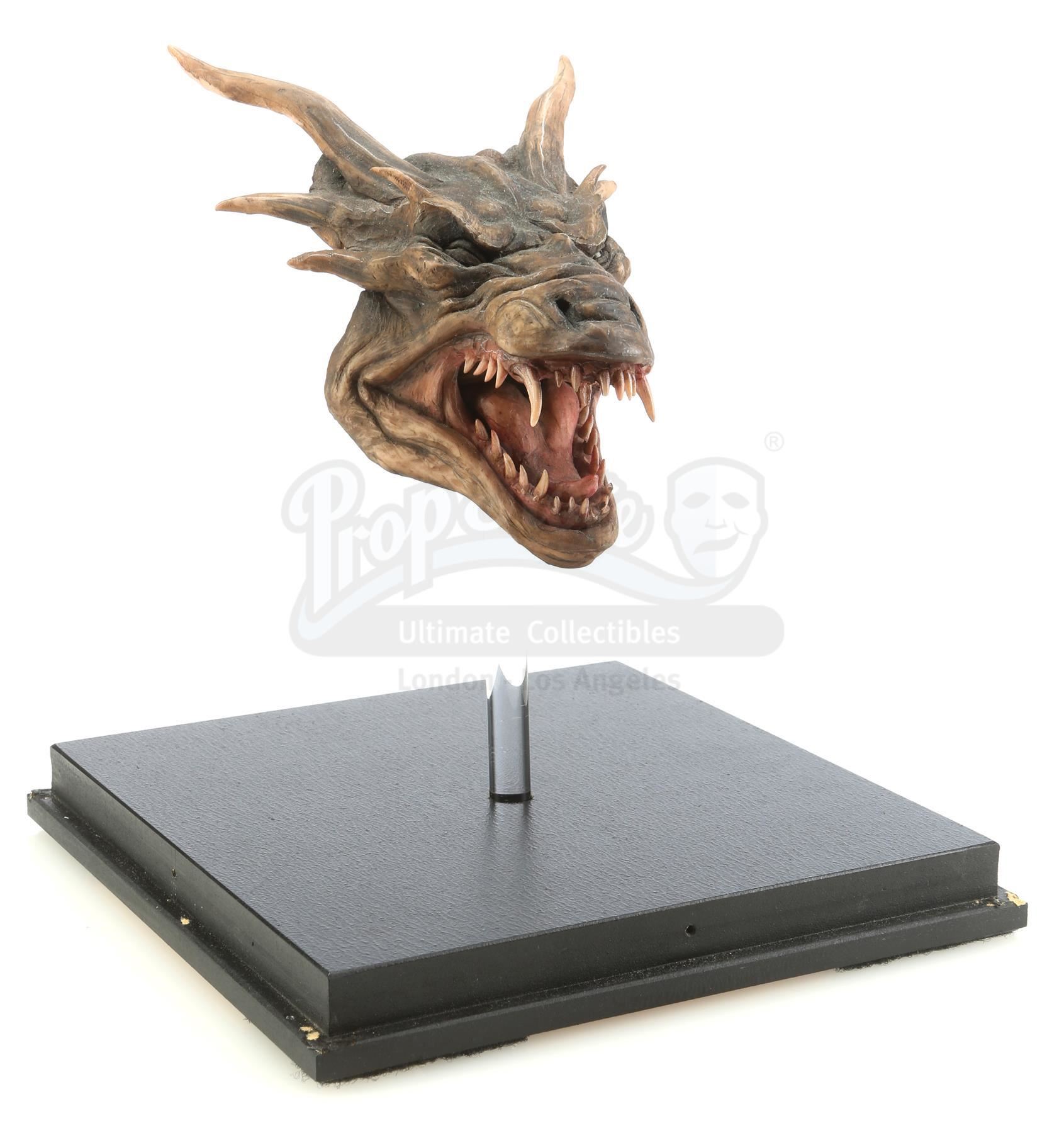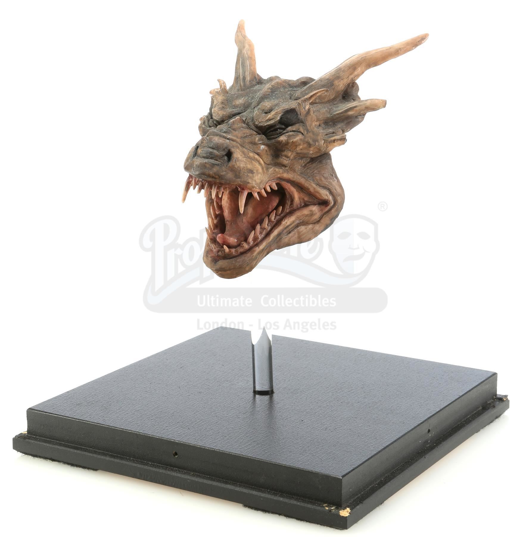 A Draco (Sean Connery) head maquette from the production of Rob Cohen's fantasy action-adventure DragonHeart. Draco (Sean Connery), a dragon, replaced the heart of the mortally wounded Prince Einon (David Thewlis) with half of his own heart and saved his life, on the condition that the Prince promised to rule with justice and virtue; a promise that Einon did not keep. This lot comes from the collection of the film's dragon designer, visual effects artist Phil Tippett.
