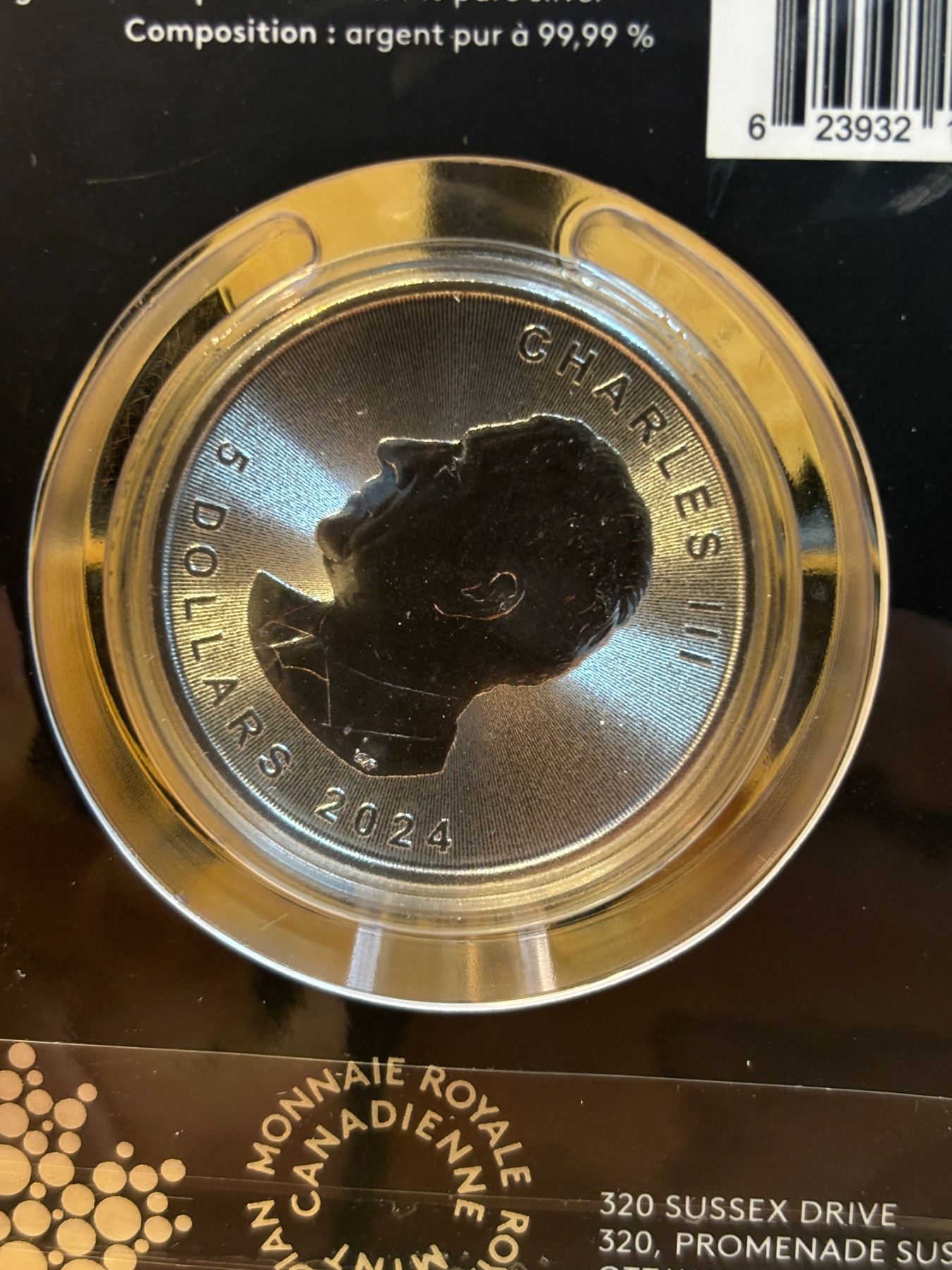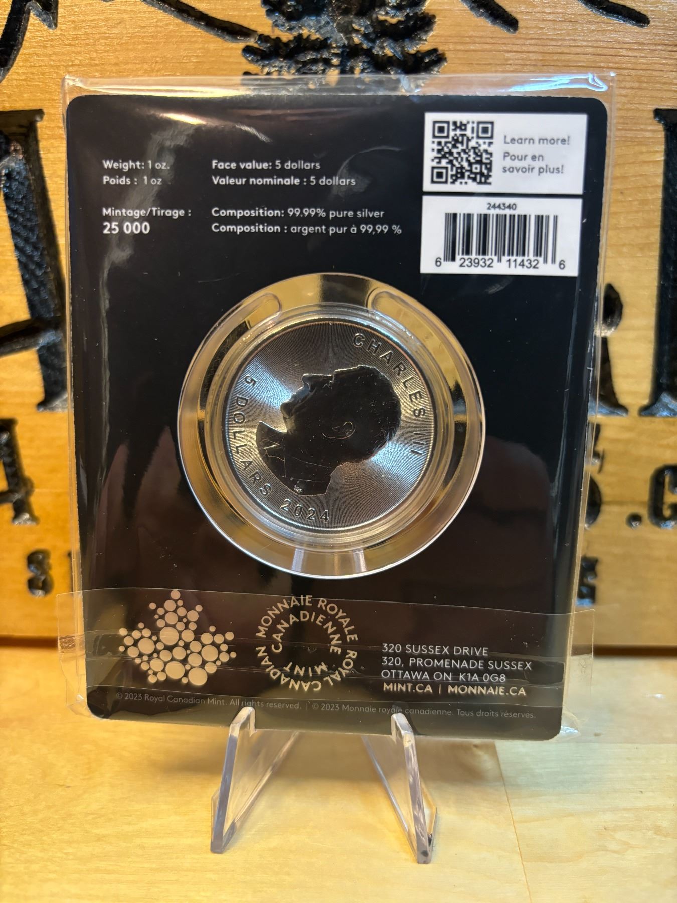 The 2025 1 oz Canadian Silver Maple Leaf is a .9999 fine silver coin featuring King Charles III on the obverse and the iconic maple leaf on the reverse. With advanced security features and MINTSHIELD™ protection, it’s perfect for collectors and investors.