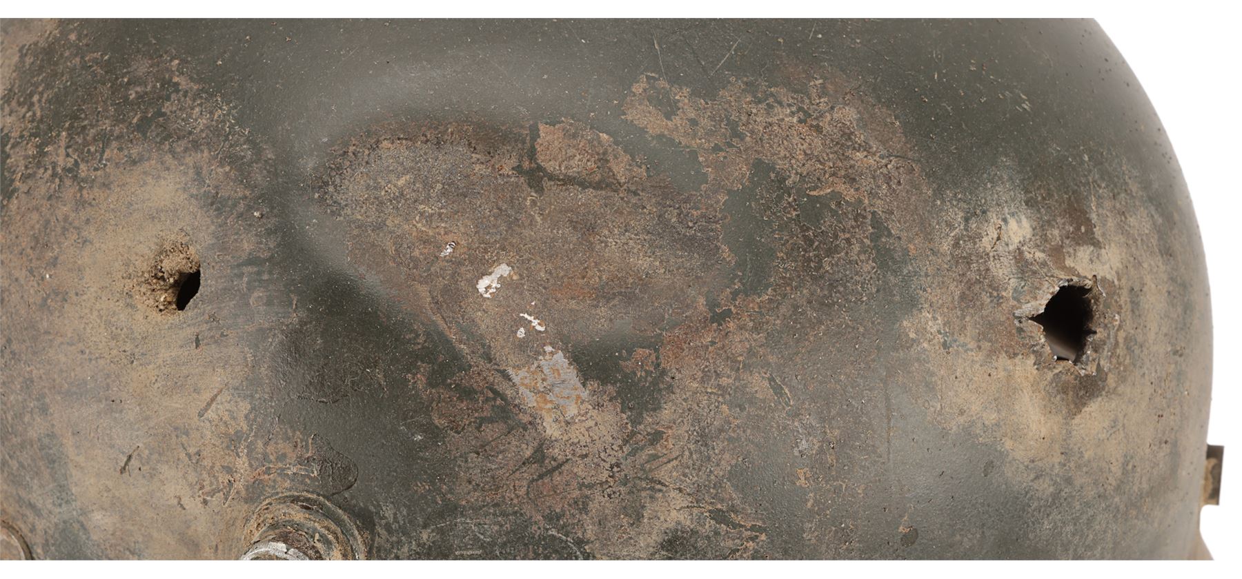 The intentional distress on the helmet screen-matches it to the one B& auml;umer wore at the end of the film, just before the Germany army attacked the French trenches after the armistice. It also photo-matches the one worn by B& auml;umer in many promotional items, including posters and the DVD cover.