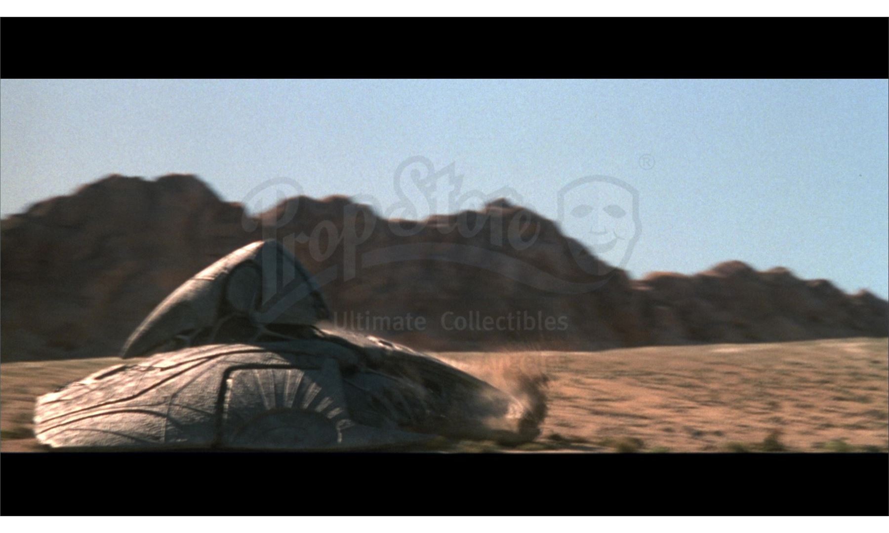 INDEPENDENCE DAY (1996) - Photo-Matched 48-Inch Alien Attacker Spaceship Model Miniature - A photo-matched 48-inch alien Attacker spaceship model miniature from Roland Emmerich's sci-fi action film Independence Day. Attackers, the primary fighter craft of the alien Harvesters, were deployed from the larger City Destroyer and Mothership spaceships. Captain Steven Hiller (Will Smith) took one attacker down and captured the pilot during the first battle.