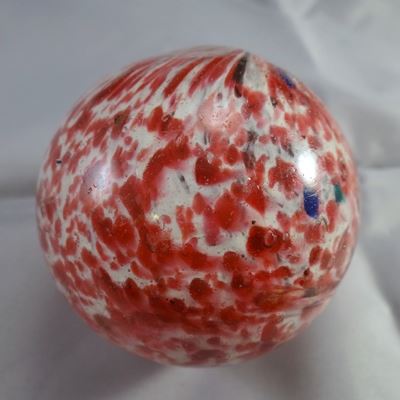 single pontil Cloud. Opaque white core with pink splotches, and some blue. Rare. One tiny chip, a couple of tiny melt spots, one subsurface moon and sparkles. Can't quite grade it Mint, though it looks that way. Faceted pontil. Germany, circa 1860-1920. 2-7/16". Near Mint(+) (8.9).