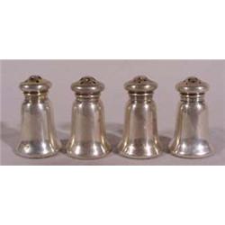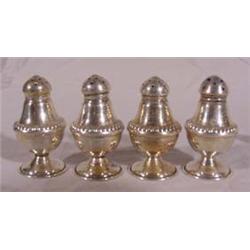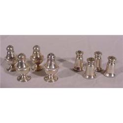Two Sets of 4 Sterling Pepper Shakers; Each marked sterling, first set approx. 2"t, second set approx. 1.75"t. Est. $20 - $30.