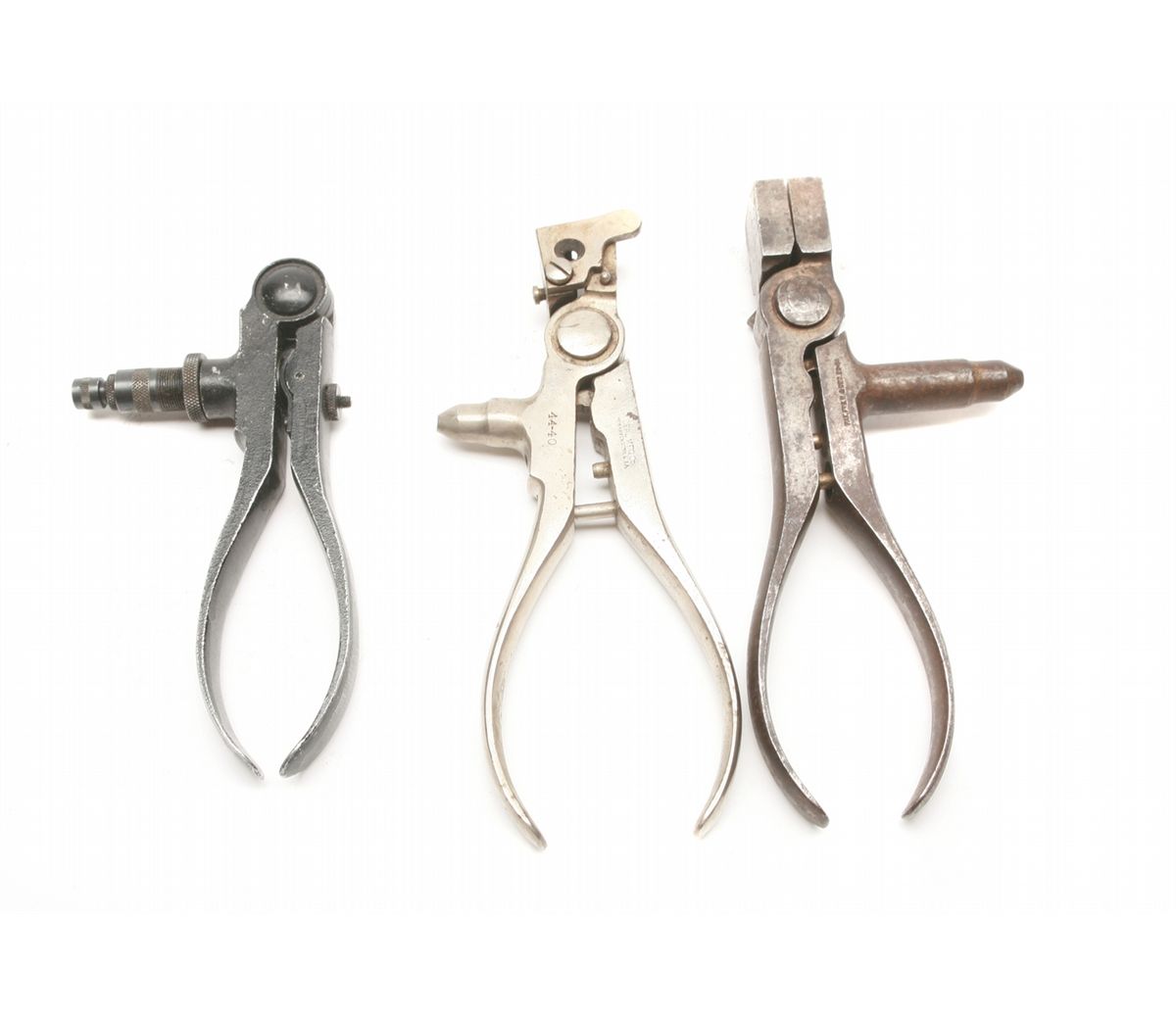 Three asst'd vintage Ideal reloading tools - complete reloading tool with die - one in 40-65 with Dec 28 84 patent date - one in 44-40 with removable die - one in 44-40 with Dec 29. 1884 patent date - non-ffl - 25VVFKIL141