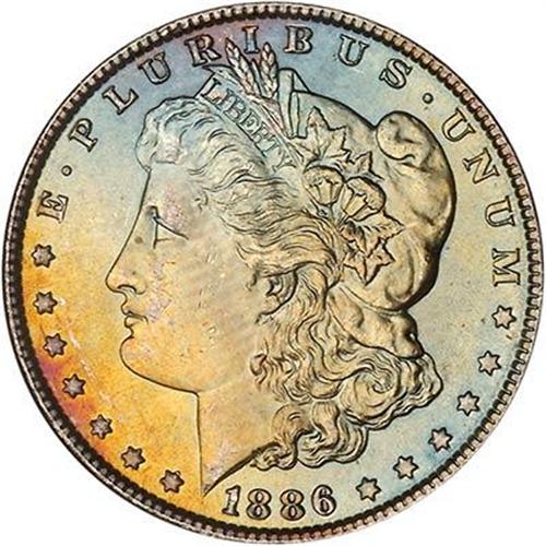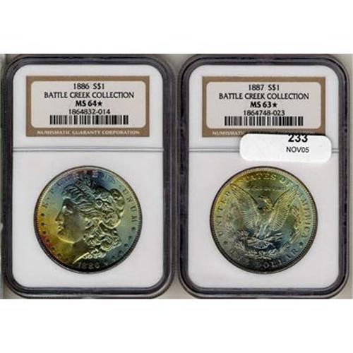 Lot of Two Toned Battle Creek Morgans.. Obverse toned 1886 NGC MS64* & Reverse toned 1887 NGC MS63*.<p><i>from The Battle Creek Collection, Part III</i>