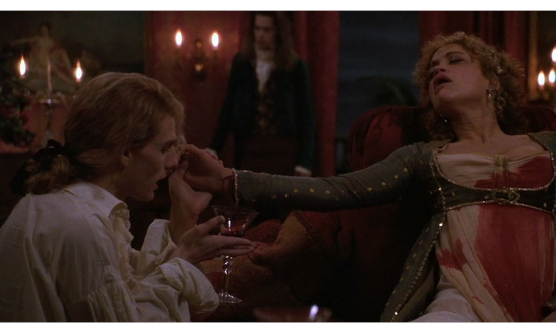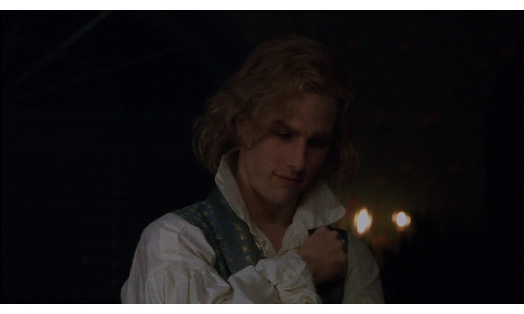 INTERVIEW WITH THE VAMPIRE: THE VAMPIRE CHRONICLES (1994) - Lestat's (Tom Cruise) Waistcoat and Drinking Glasses - Lestat's (Tom Cruise) waistcoat and drinking glasses from Neil Jordan's horror film Interview with the Vampire: The Vampire Chronicles. In New Orleans, Lestat filled his glass with the blood of a prostitute for the reluctant Louis (Brad Pitt) to drink. Later, Lestat wore his waistcoat as Claudia (Kirsten Dunst) tricked him into drinking the blood of dead twins.