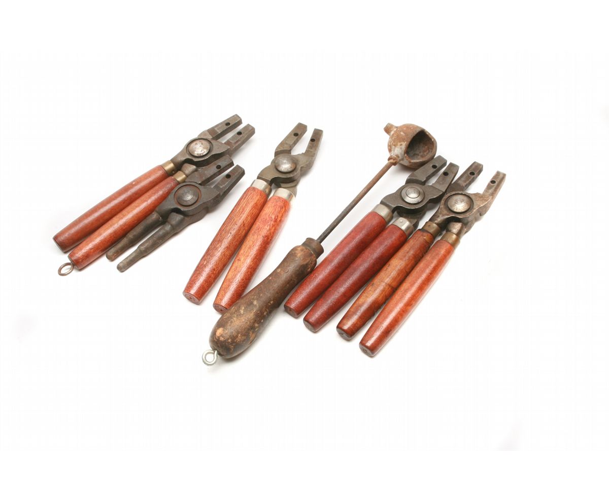 Four sets of bullet mold wood handles & one set without wood handles - one lead ladel - non-ffl - 25VVFKIL150