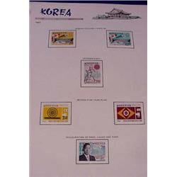 Korea Stamp Collection; This very nice collection of Korean stamps are housed in four albums with all the individual stamps mint hinged and all the souvenir sheets mint never hinged. The two highlights in this collection are Scott's #31, #32, and #211. There are many other good quality stamps. Est. $800 - $1,200.