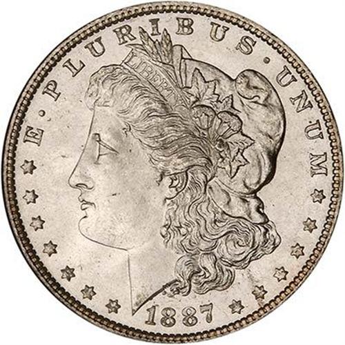 1887 Morgan Dollar. The powerfully struck, lustrous surfaces are readily appreciable at all angles. This is a common issue among Gem quality Type buyers. (#7172)