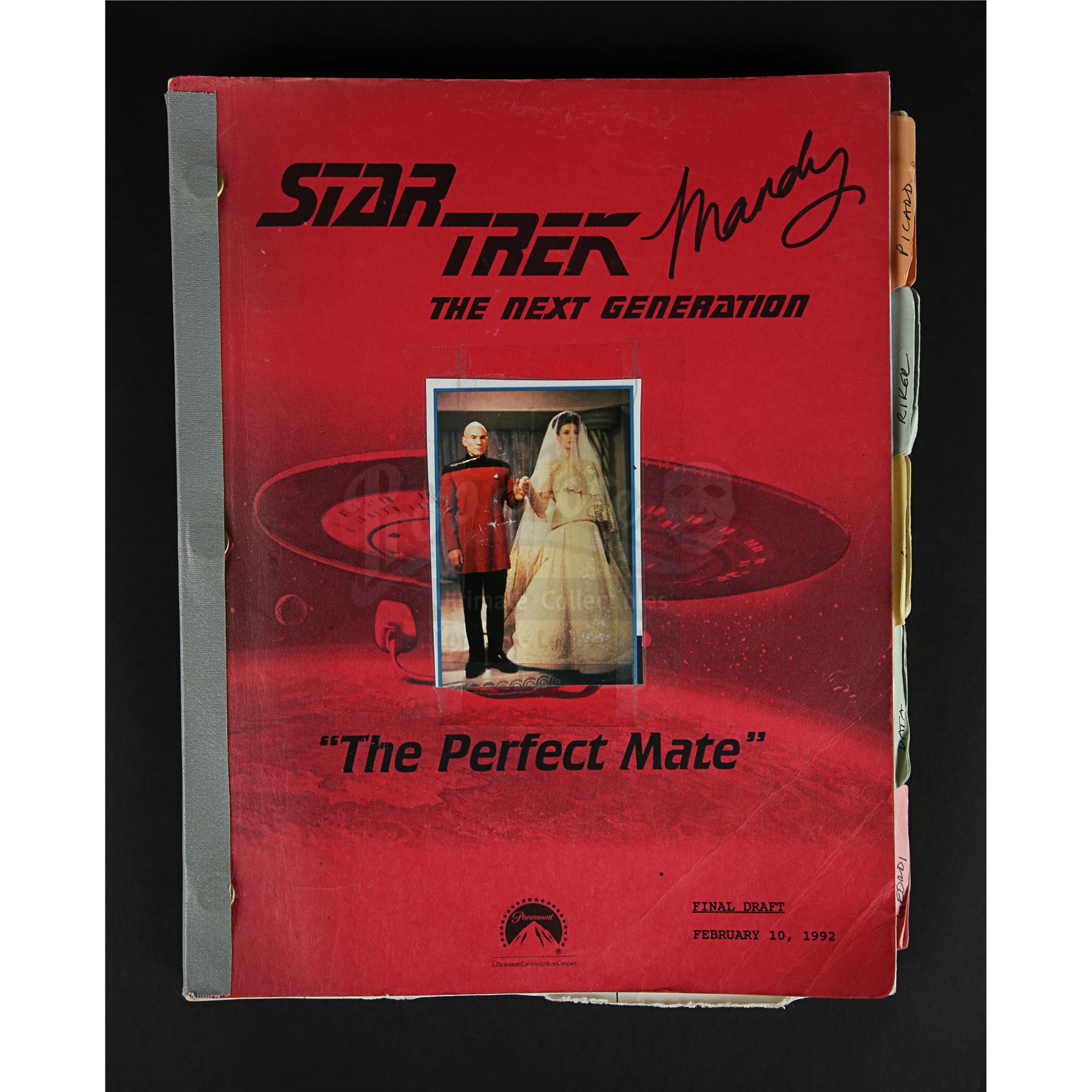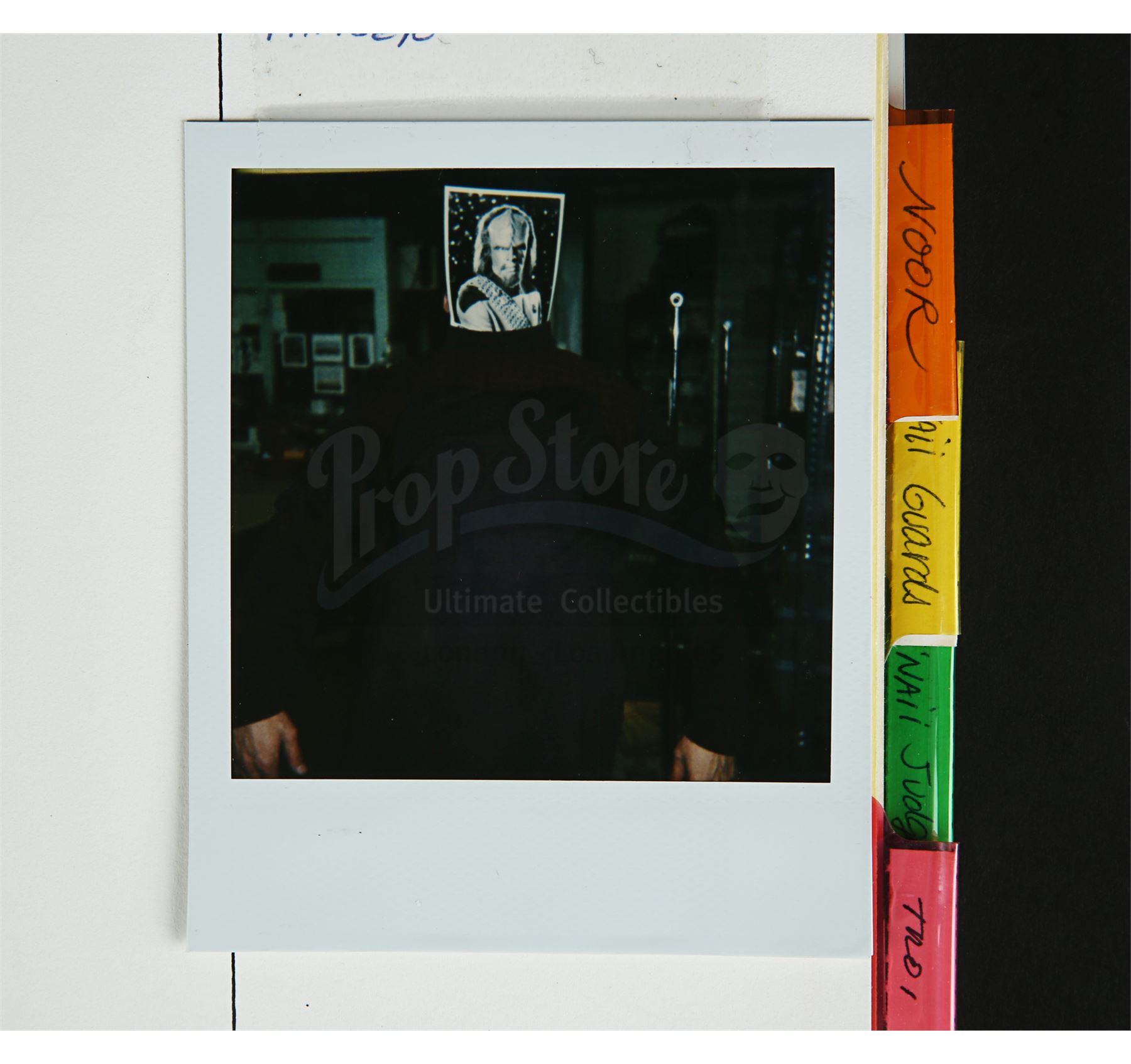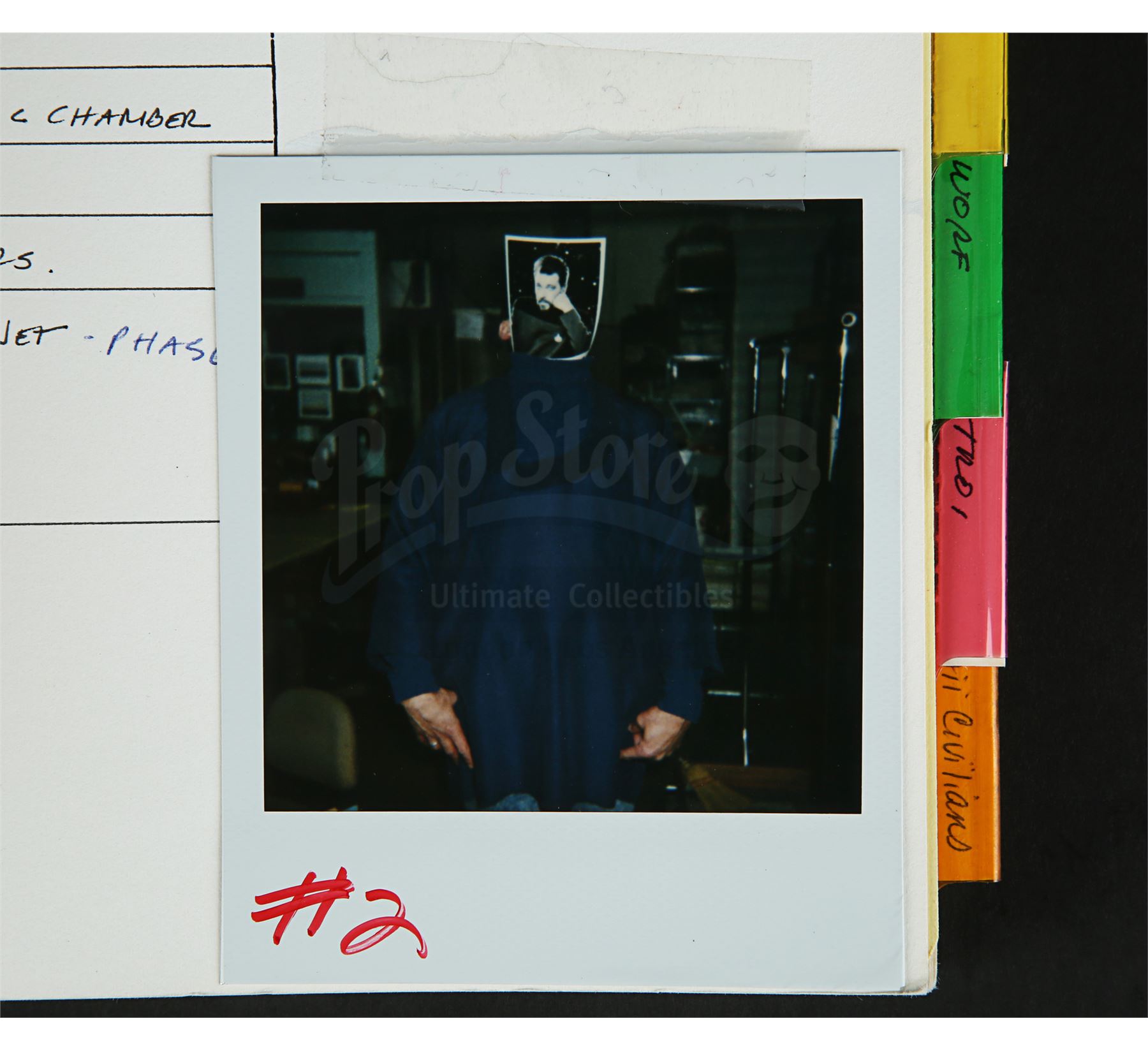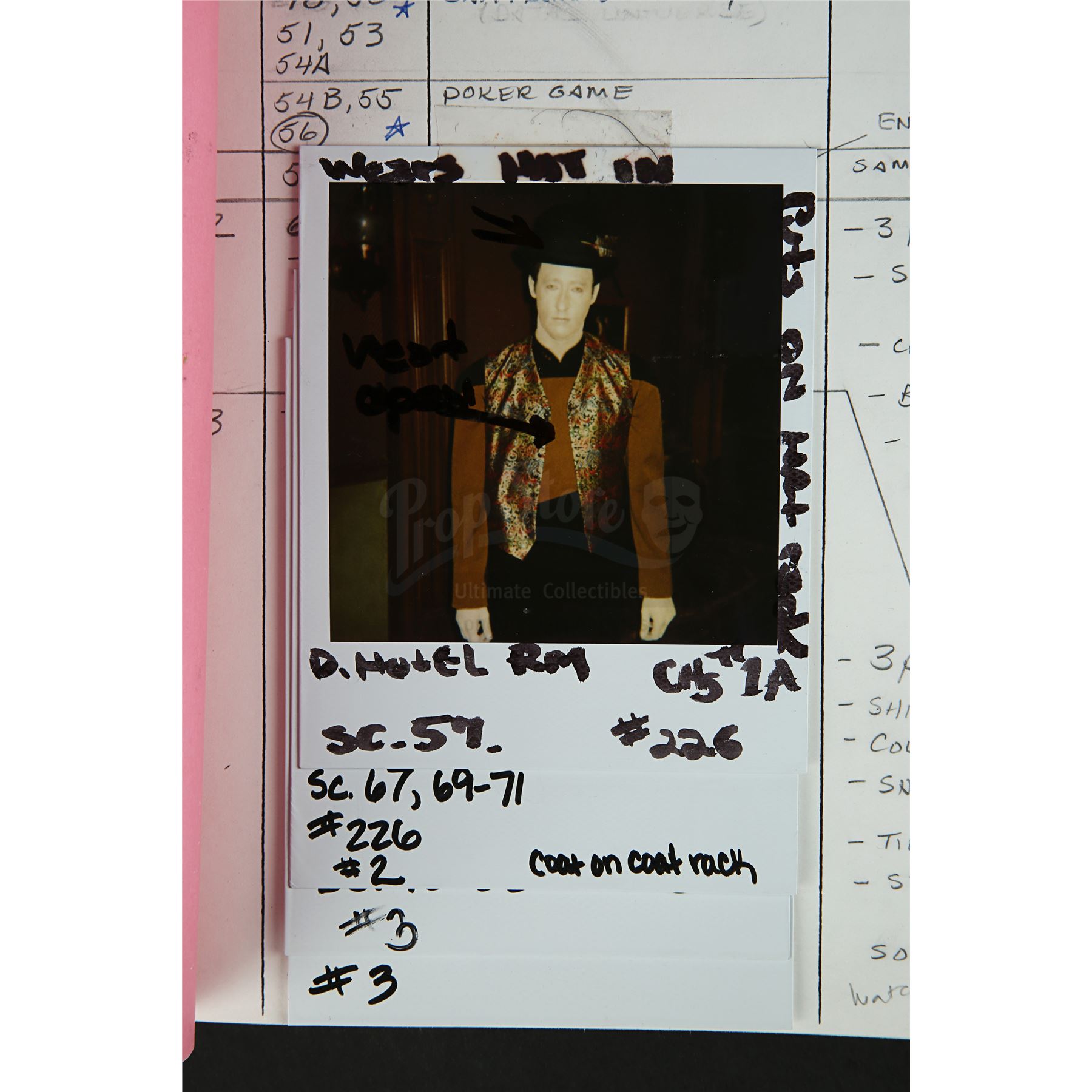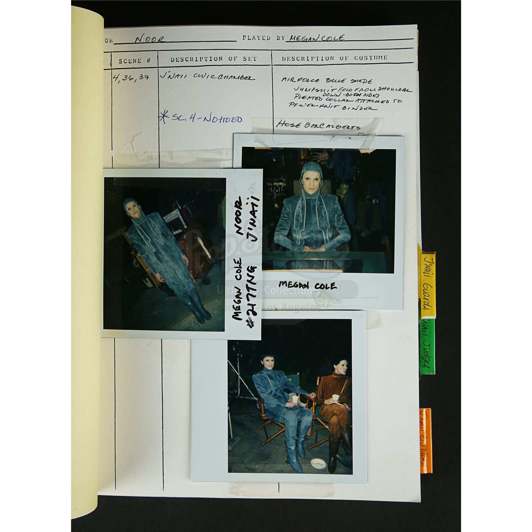 This lot will be auctioned on Tuesday, June 29th. The auction will begin at 9:00am PDT and lots are sold sequentially via live auctioneer; tune in to the live streaming broadcast on auction day to follow the pace. Note other lots in the auction may close on June 30th or July 1st. A set of costume continuity scripts from the production of the sci-fi TV series Star Trek: The Next Generation. This lot consists of scripts for nine Season 5 episodes. Some of the scripts were attributed to key costumers Amanda Chamberlin and Jerry Bono. Each document contains a revised final draft script and detailed costume breakdown sheets. There are 302 Polaroid photographs adhered to their corresponding pages, which show principal and supporting cast members, including Picard (Patrick Stewart), Riker (Jonathan Frakes), Deanna Troi (Marina Sirtis), Data (Brent Spiner), Wesley Crusher (Wil Wheaton) and Guinan (Whoopi Goldberg). The set displays minor marks, creasing, rips, and edgewear but remains in good overall condition. Dimensions: (largest script): 11" x 9" x 1.5" (28 cm x 23 cm x 4 cm) Sold without copyright; see copyright notice in the Buyer's Guide. Estimate: $4,000 - 6,000