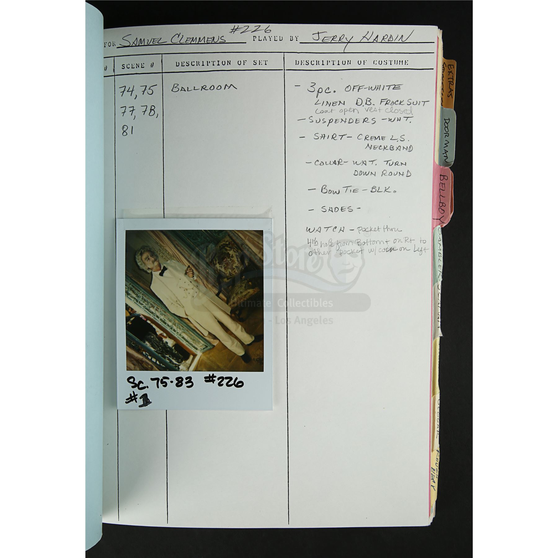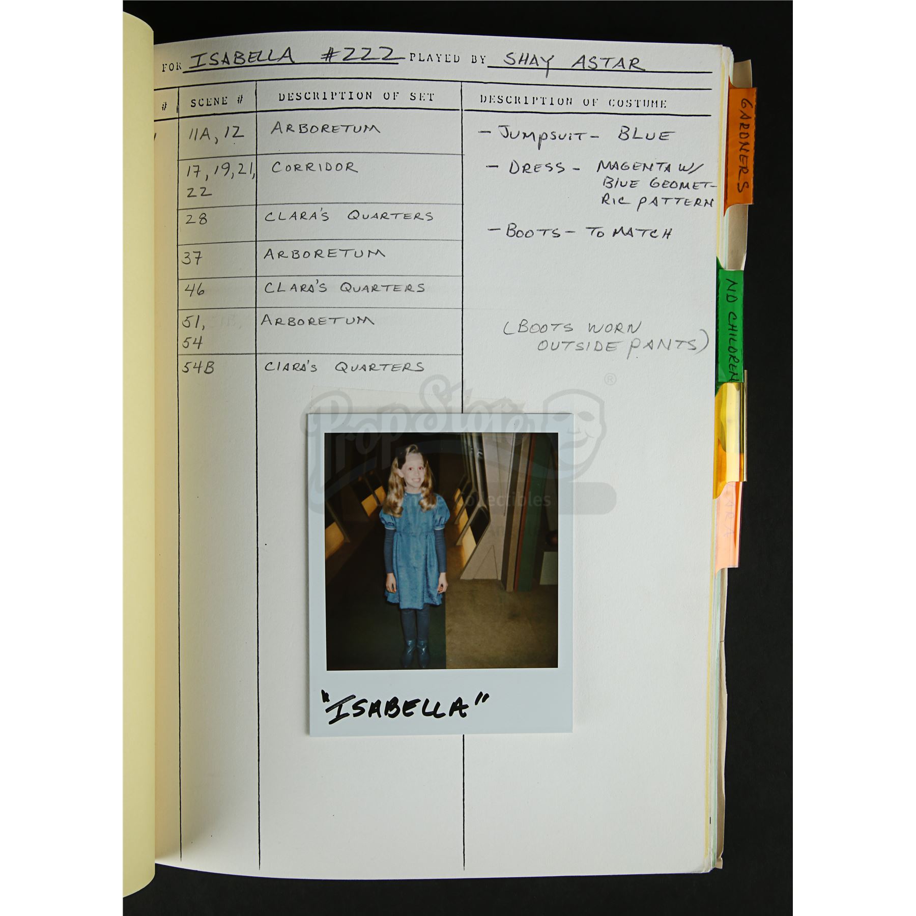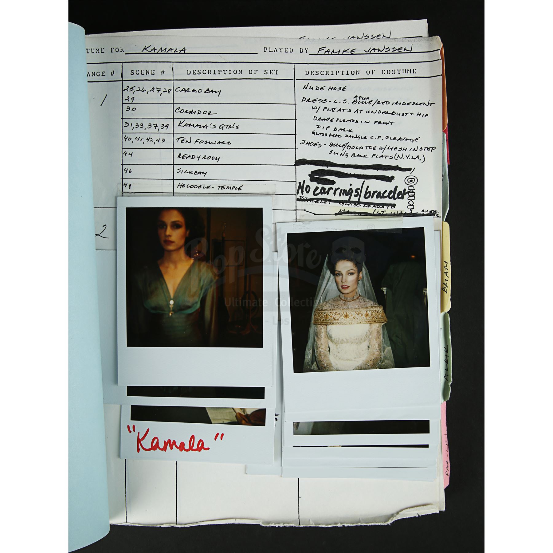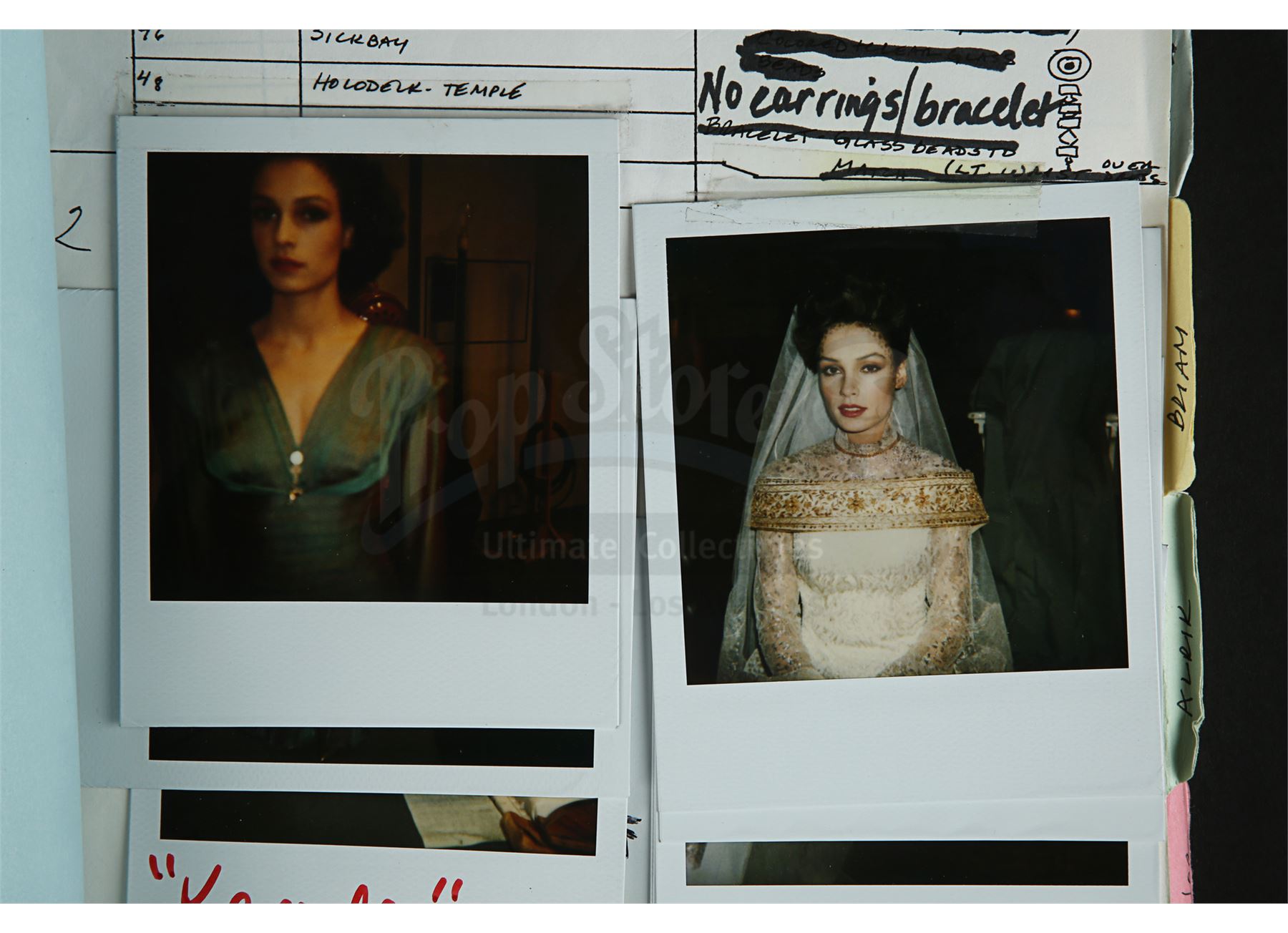 This lot will be auctioned on Tuesday, June 29th. The auction will begin at 9:00am PDT and lots are sold sequentially via live auctioneer; tune in to the live streaming broadcast on auction day to follow the pace. Note other lots in the auction may close on June 30th or July 1st. A set of costume continuity scripts from the production of the sci-fi TV series Star Trek: The Next Generation. This lot consists of scripts for nine Season 5 episodes. Some of the scripts were attributed to key costumers Amanda Chamberlin and Jerry Bono. Each document contains a revised final draft script and detailed costume breakdown sheets. There are 302 Polaroid photographs adhered to their corresponding pages, which show principal and supporting cast members, including Picard (Patrick Stewart), Riker (Jonathan Frakes), Deanna Troi (Marina Sirtis), Data (Brent Spiner), Wesley Crusher (Wil Wheaton) and Guinan (Whoopi Goldberg). The set displays minor marks, creasing, rips, and edgewear but remains in good overall condition. Dimensions: (largest script): 11" x 9" x 1.5" (28 cm x 23 cm x 4 cm) Sold without copyright; see copyright notice in the Buyer's Guide. Estimate: $4,000 - 6,000