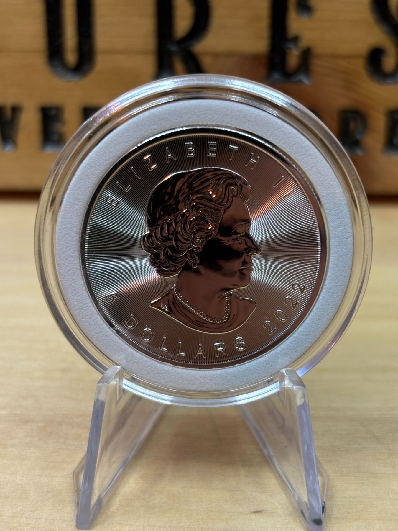The 2022 1 oz Canadian Silver Maple Leaf is a .9999 fine silver coin featuring King Charles III on the obverse and the iconic maple leaf on the reverse. With advanced security features and MINTSHIELD™ protection, it’s perfect for collectors and investors.