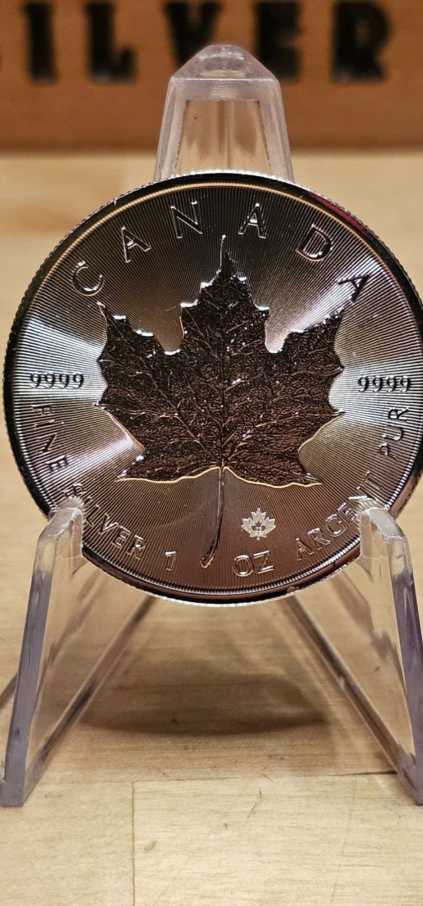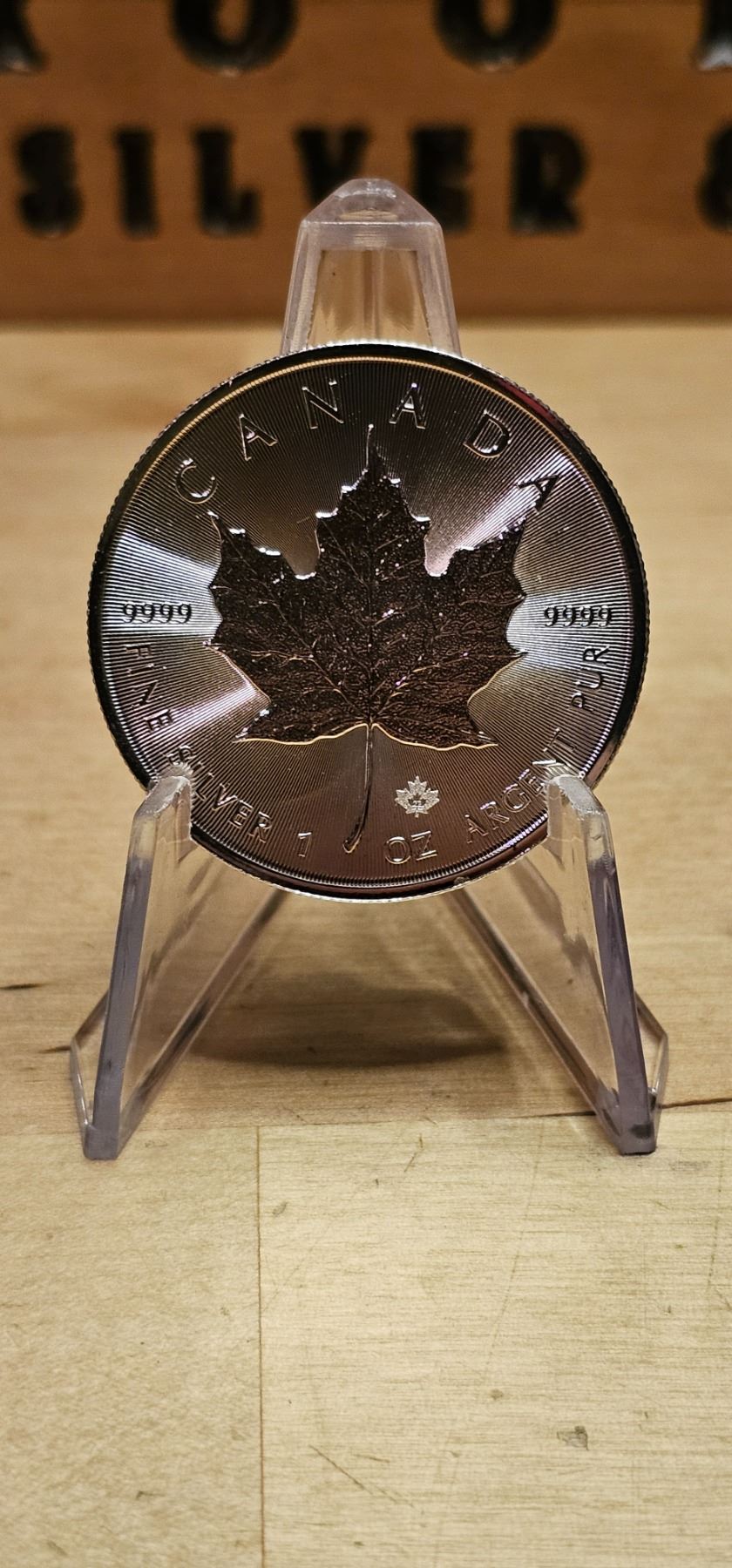 The 1 oz Canadian Maple Leaf 2022 Silver Round is a premium bullion round struck in .9999 fine silver. The reverse features the iconic Canadian Maple Leaf, a symbol of Canada’s national identity, strength, and natural beauty. The obverse typically displays a portrait of Queen Elizabeth II, along with the coin's denomination and year of issue. Known for its high purity and classic design, this silver round is a popular choice for collectors and investors seeking both beauty and value.