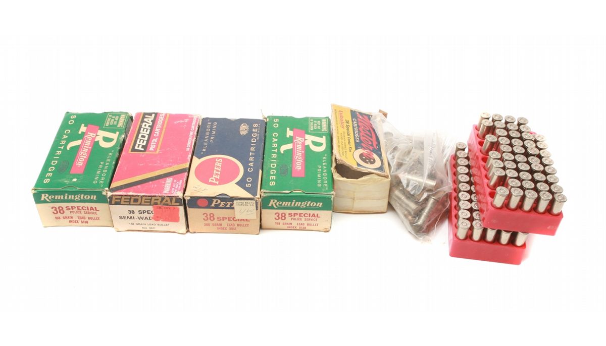 Approx. 300 rds of asst'd 38 Spl - a mix of RN lead & JSP bullets - several worn vintage factory boxes - non-ffl - 25ERMAl019