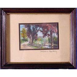 Nicely framed and matted, this signed Wallace Nutting print is in great condition. The colors of the country road landscape are strong and true. American. Ca. 1910. Frame 5.75" x 4.75". Print 3"x2". Est. $40 - $60.