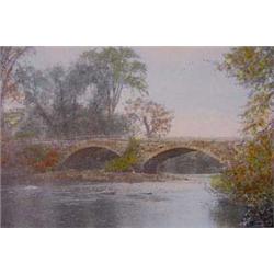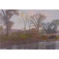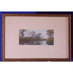 A nice early print in original frame. The matte board shows some light soiling and the image is maybe a touch faded. The colors are still strong in this beautiful river filled landscape. American. Ca. 1900. Est. $60 - $80.
