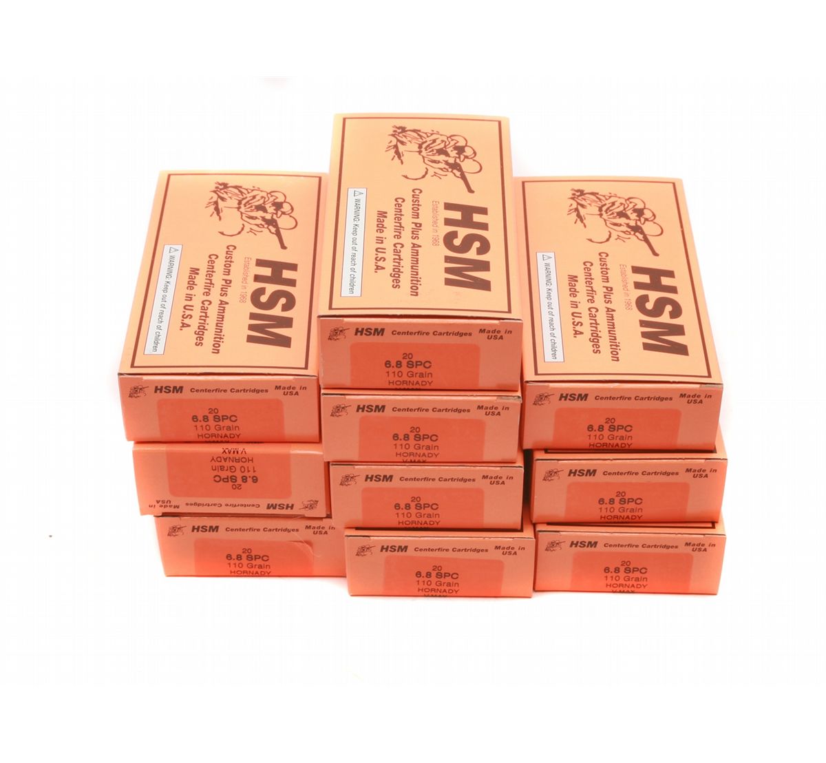 10 boxes of HSM 6.8 SPC 110 Hornady V-Max ammo - all factory 20 rd boxes - non-ffl - 25XXKHKS007