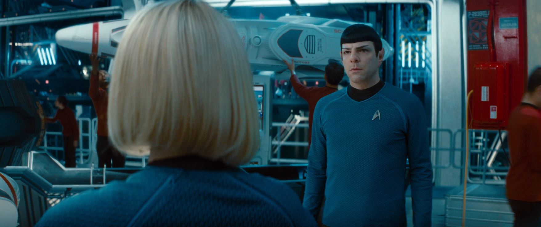 This lot will be auctioned on Tuesday, June 29th. The auction will begin at 9:00am PDT and lots are sold sequentially via live auctioneer; tune in to the live streaming broadcast on auction day to follow the pace. Note other lots in the auction may close on June 30th or July 1st. Spock's Enterprise science tunic from Paramount Pictures' sci-fi sequel Star Trek Into Darkness. Spock wore his uniform while serving aboard the Enterprise throughout the film. This blue spandex long-sleeve tunic features a printed optical repeat Starfleet insignia pattern with piping around the collar, a hidden zipper at the left shoulder, two silver-color bands on the wrists, and a metal Starfleet science insignia (made for the sequel) on the left breast. Also included is a gray polyester mock turtleneck undershirt with a collar stitched to the top of a modified spandex sport shirt. The Starfleet insignia on the tunic is the proper type for the costume; it was used in the production, but not specifically by this character. The lot is in good overall condition with rust and stains to the insignia from production and age. Estimate: $4,000 - 6,000