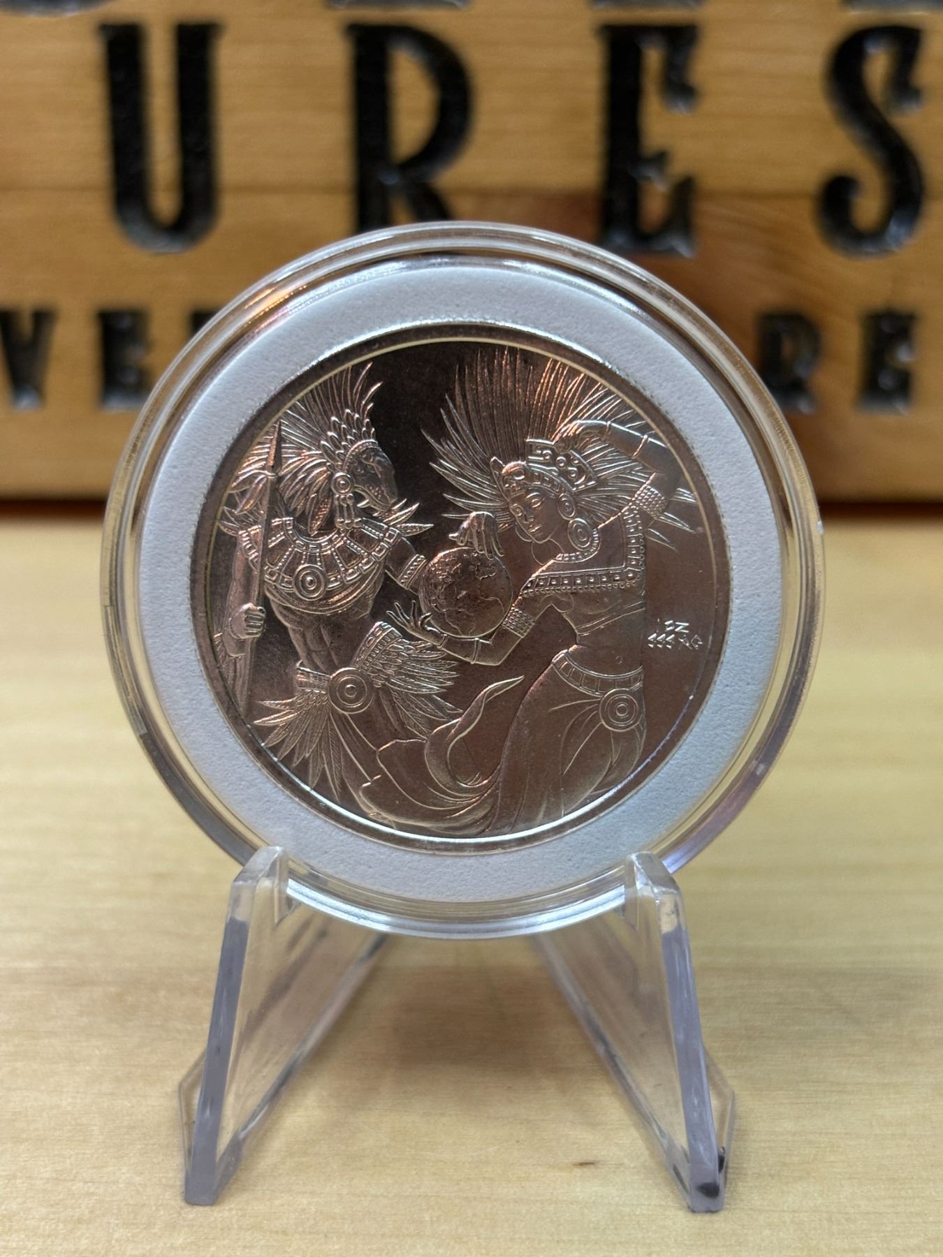 The 1 oz Aztec Yin/Yang Coin is a silver coin that typically features a combination of Aztec imagery and the Yin/Yang symbol, blending elements of Aztec culture with Chinese philosophy. The coin contains 1 ounce of .999 fine silver and often depicts an intricate design that merges the Aztec symbols, such as the Sun Stone or gods, with the Yin/Yang symbol, representing balance and duality. This coin is popular among collectors who appreciate both cultural themes and the aesthetic of the coin's design, along with its silver content.