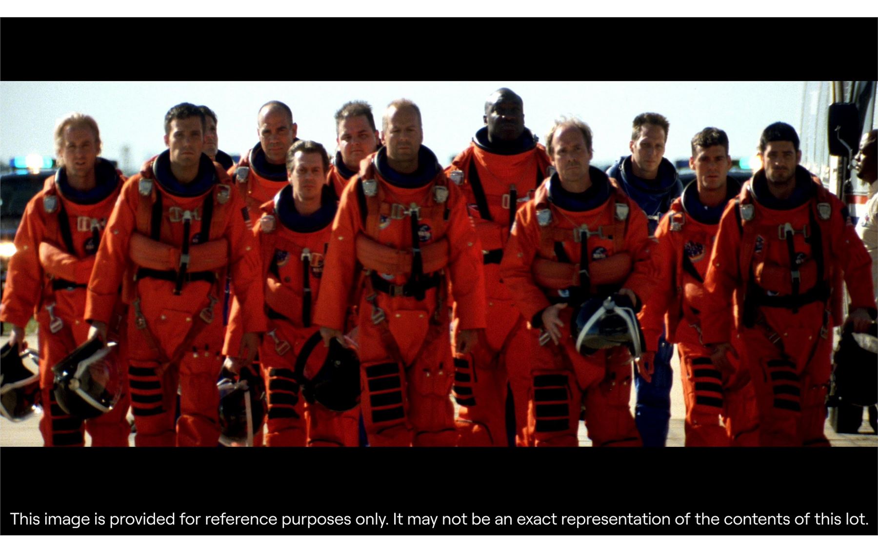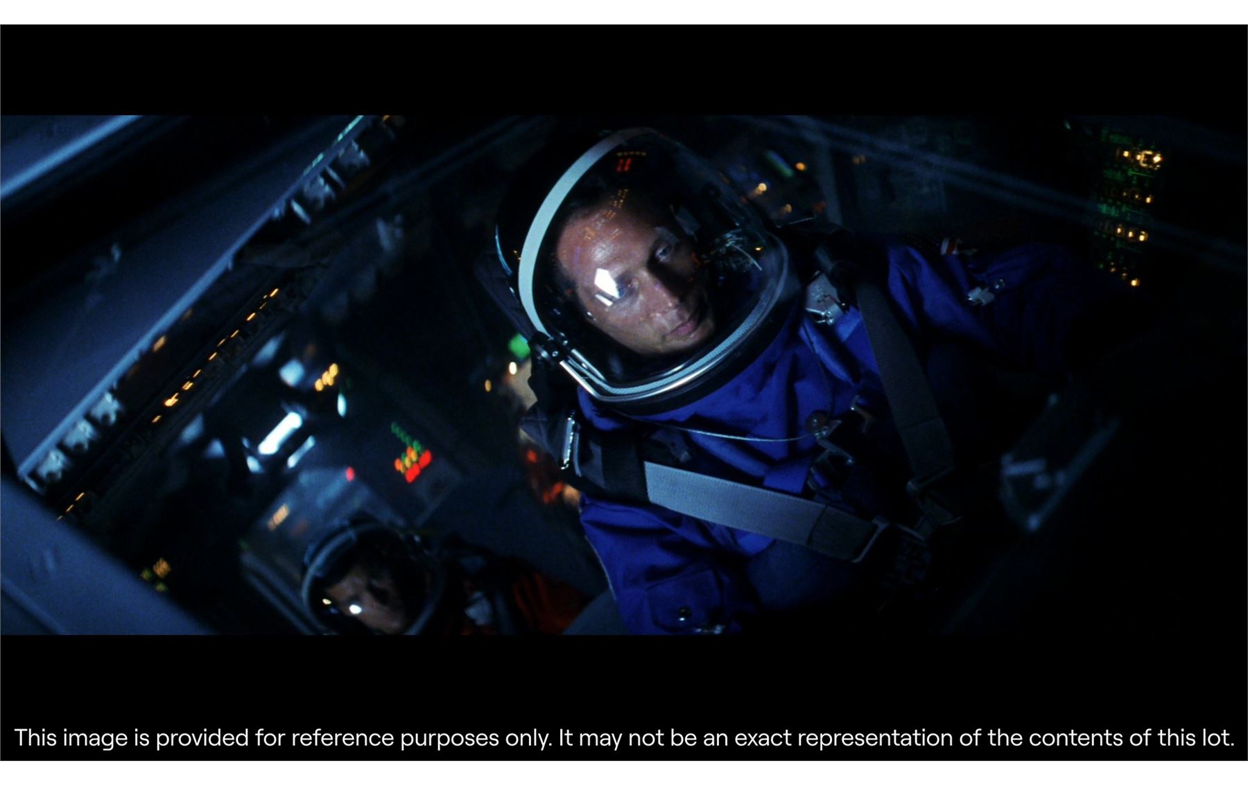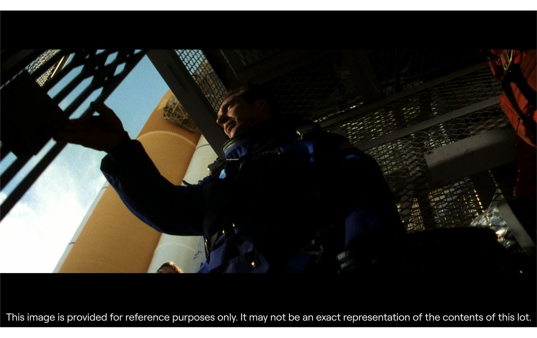Colonel Willie Sharp's (William Fichtner) ACES suit and helmet from Michael Bay's sci-fi action film Armageddon. Sharp wore his blue Advanced Crew Escape Suit (ACES) during the shuttle launch, removing it after docking at the Russian space station.