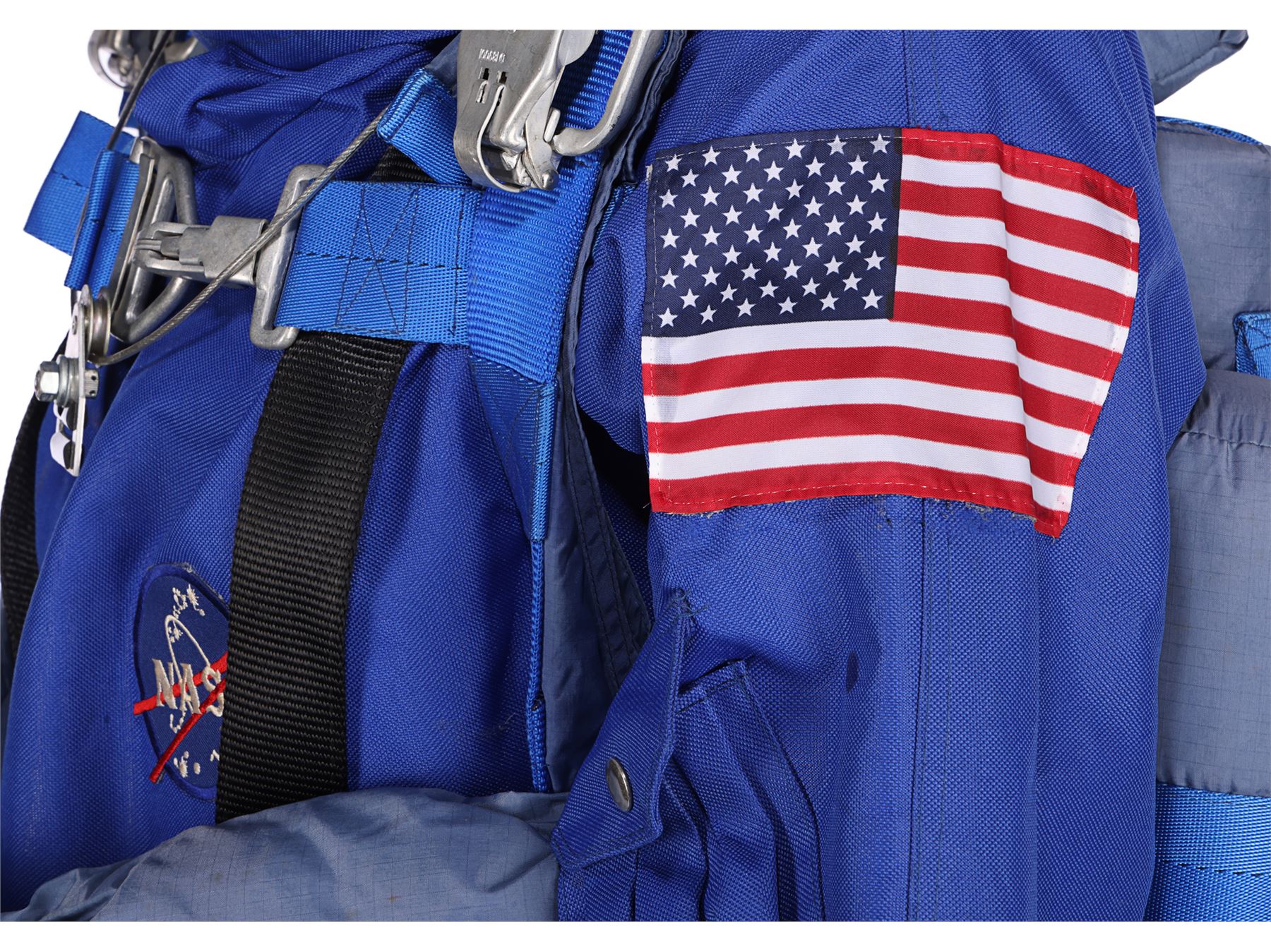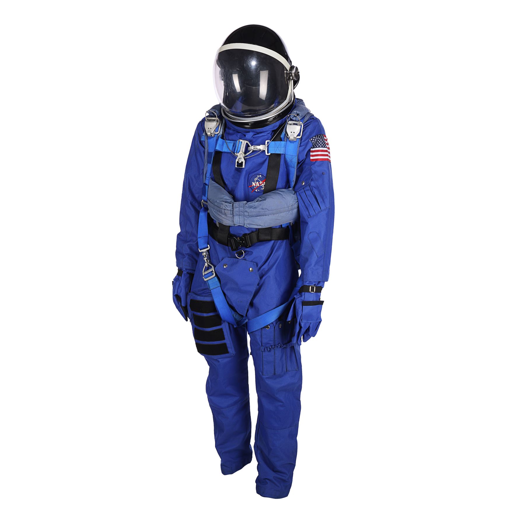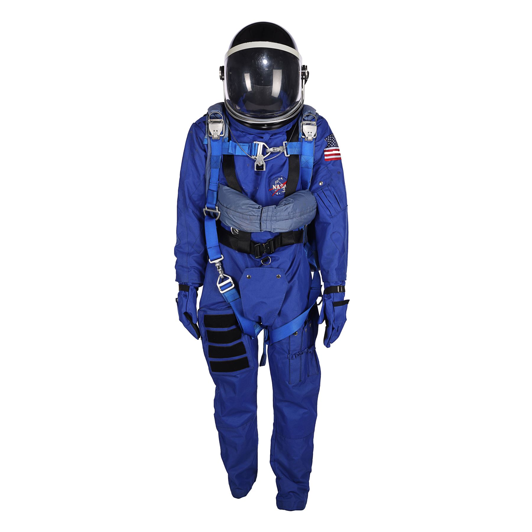 Colonel Willie Sharp's (William Fichtner) ACES suit and helmet from Michael Bay's sci-fi action film Armageddon. Sharp wore his blue Advanced Crew Escape Suit (ACES) during the shuttle launch, removing it after docking at the Russian space station.