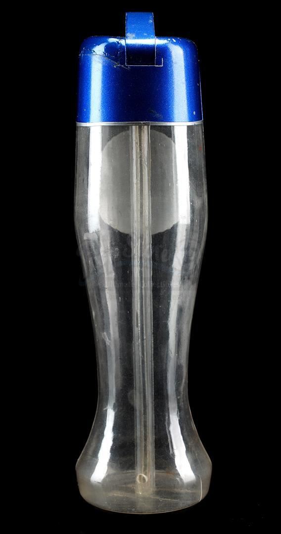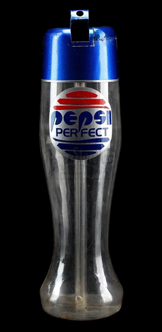 This lot will be auctioned on Tuesday, June 29th. The auction will begin at 9:00am PDT and lots are sold sequentially via live auctioneer; tune in to the live streaming broadcast on auction day to follow the pace. Note other lots in the auction may close on June 30th or July 1st. A Pepsi Perfect bottle from Robert Zemeckis' sci-fi sequel Back to the Future Part II. Marty McFly (Michael J. Fox) ordered a Pepsi Perfect when he pretended to be his own son at Cafe 80's in 2015. This transparent plastic bottle features a blue, red, and silver Pepsi logo affixed to the front and a blue top with a mouthpiece which can be moved to attach to a plastic straw in the interior. The bottle shows signs of wear from age and use, including a small hole near the bottom and a missing section on one side of the top which was restored, but it remains in good overall condition. Dimensions: 10.75" x 5.75" x 5.75" (27.25 cm x 14.5 cm x 14.5 cm) Estimate: $3,000 - 5,000