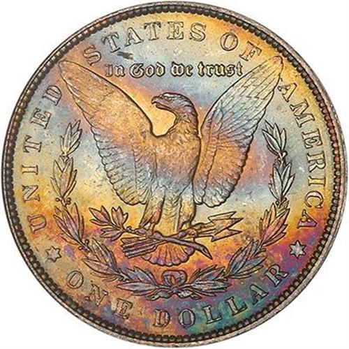 1887 Morgan Dollar. Another featuring attractive reverse toning, a rainbow panoply of colors. (#7172)<p><i>from The Battle Creek Collection, Part III</i>