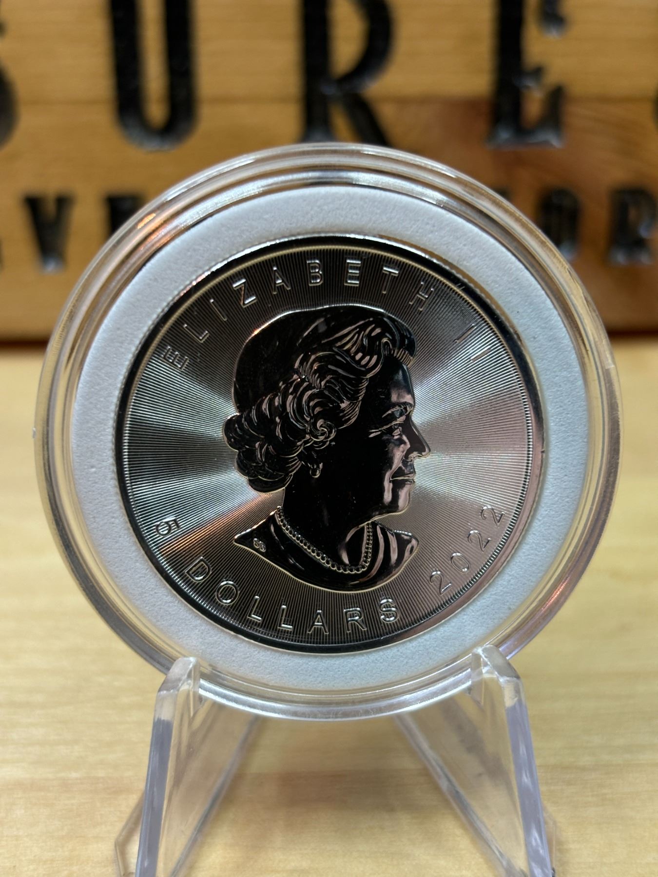 The 2022 1 oz Canadian Silver Maple Leaf is a .9999 fine silver coin featuring King Charles III on the obverse and the iconic maple leaf on the reverse. With advanced security features and MINTSHIELD™ protection, it’s perfect for collectors and investors.
