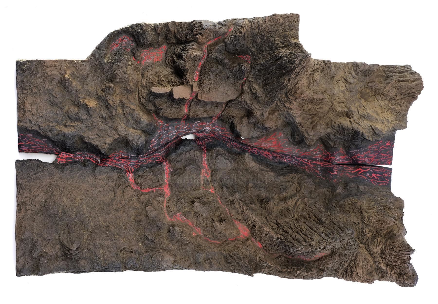 This lot will be auctioned on Tuesday, June 29th. The auction will begin at 9:00am PDT and lots are sold sequentially via live auctioneer; tune in to the live streaming broadcast on auction day to follow the pace. Note other lots in the auction may close on June 30th or July 1st. A Mustafar planet surface design maquette from George Lucas' Star Wars: Revenge of the Sith. After murdering the Separatist Council on the volcanic planet Mustafar, Anakin Skywalker (Hayden Christensen) fell in a lightsaber duel with his former master, Obi-Wan Kenobi (Ewan McGregor). This design maquette was created by Industrial Light & Magic (ILM) to help the production design team and art department establish the look of the molten planet's surface. It also represents the site near two small lava streams where the epic duel concluded, as Obi-Wan informed Anakin that he had the high ground. The sequence was then brought to life with a combination of live-action stunt work, digital environments effects, and physical model miniatures. This large foam and paper composite maquette is split into four sections, each of which is ornately molded and painted brown and gray to resemble craggy, mountainous stone with red and black lava running underneath. The maquette is in good overall condition with exposed foam, flaking paint, and scuffs throughout from production and age. Dimensions (each): 18" x 17" x 5" (45.75 cm x 43.25 cm x 12.75 cm) Estimate: $8,000 - 10,000