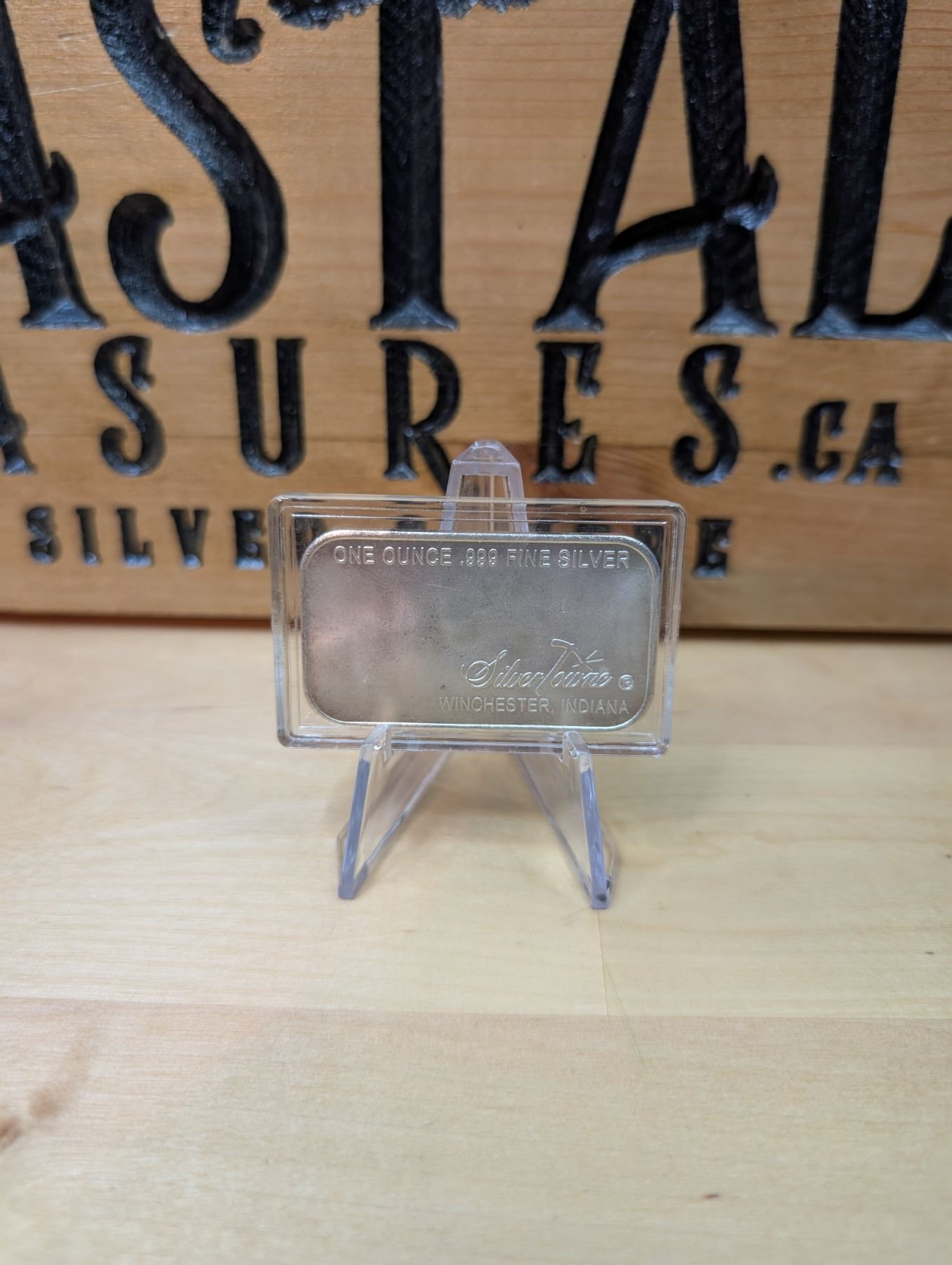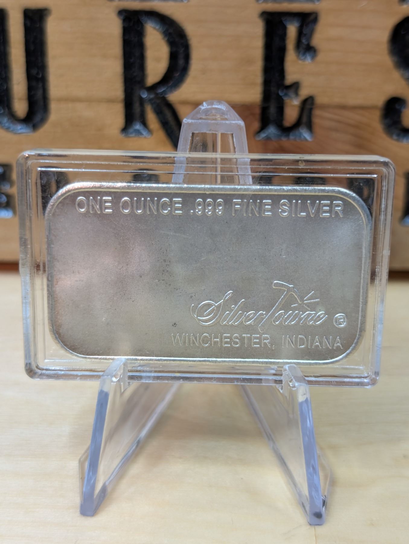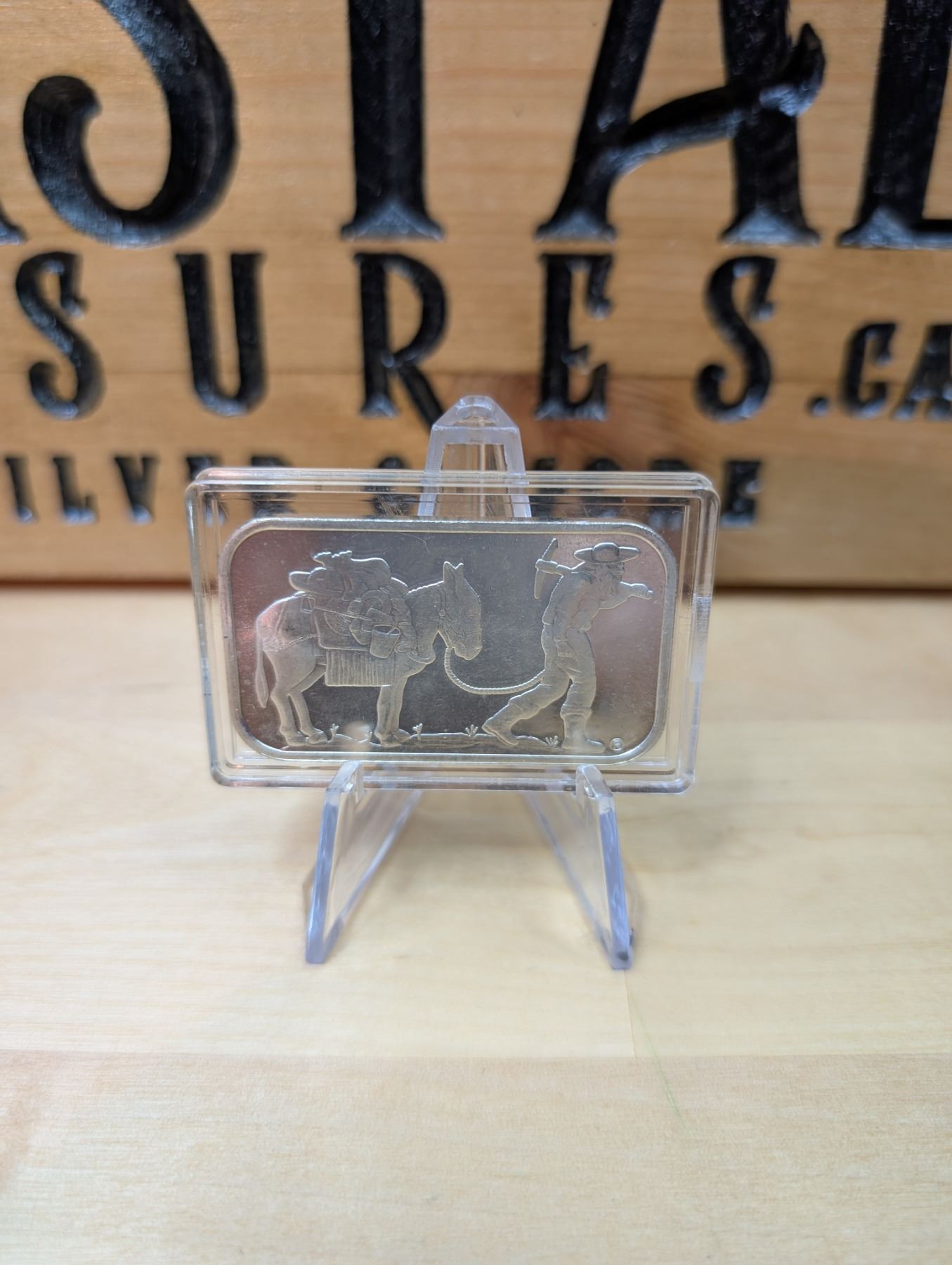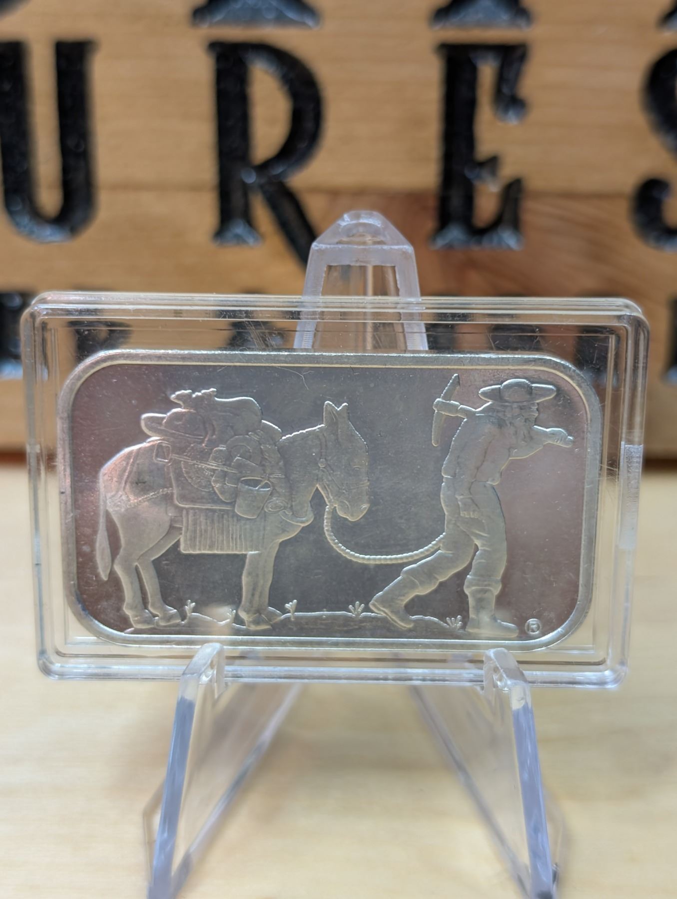 The 1 oz SilverTowne Prospector bar is made from .999 fine silver and features a design of a prospector panning for gold, a classic symbol of the American West. Produced by SilverTowne, a trusted mint, these bars are popular with collectors and investors. The value is based on the current silver price and demand for the design.