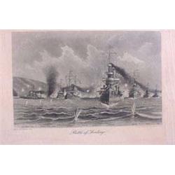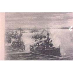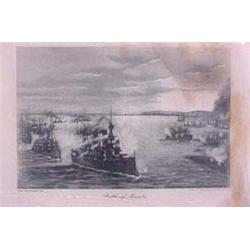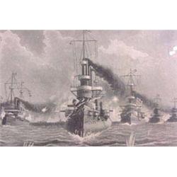 One is the Battle of Manila, the other is the Battle of Santiago. The prints have some water damage and the frames have been regilt. Copyrighted 1899 by Butler Thomas & Co. Ltd. Est. $20 - $40.