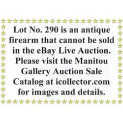 Lot #290 is an antique firearm than cannot be sold in the eBay Live Auction. Please see to Manitou Gallery Auction Sale Catalog at icollector.com fro images & details.