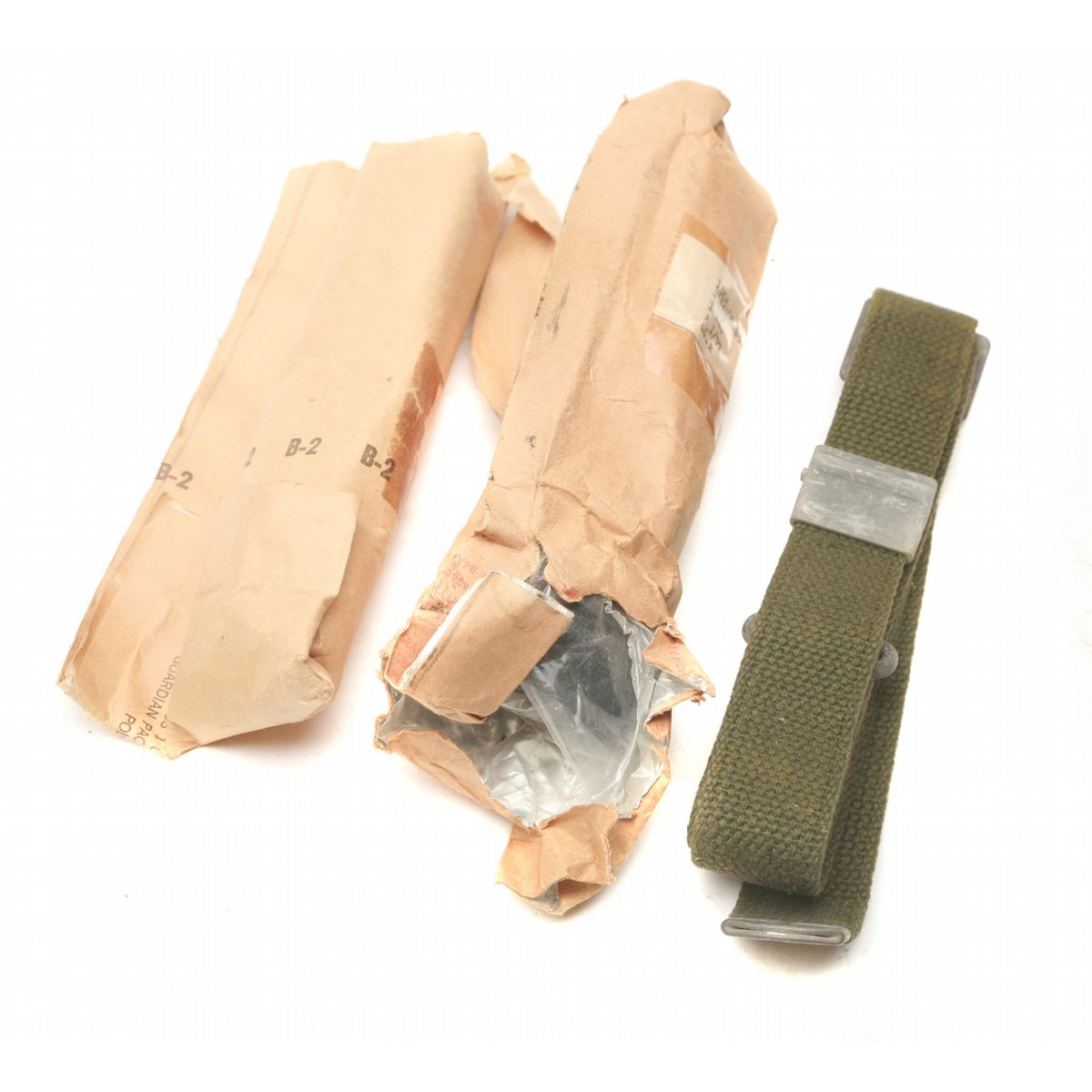 One OD canvas M1 Garand style sling with D-tip metal hardware - one black canvas M1 Garand style silent sling with D-tip metal hardware - both in like new cond. - non-ffl - 25DJBAZ018