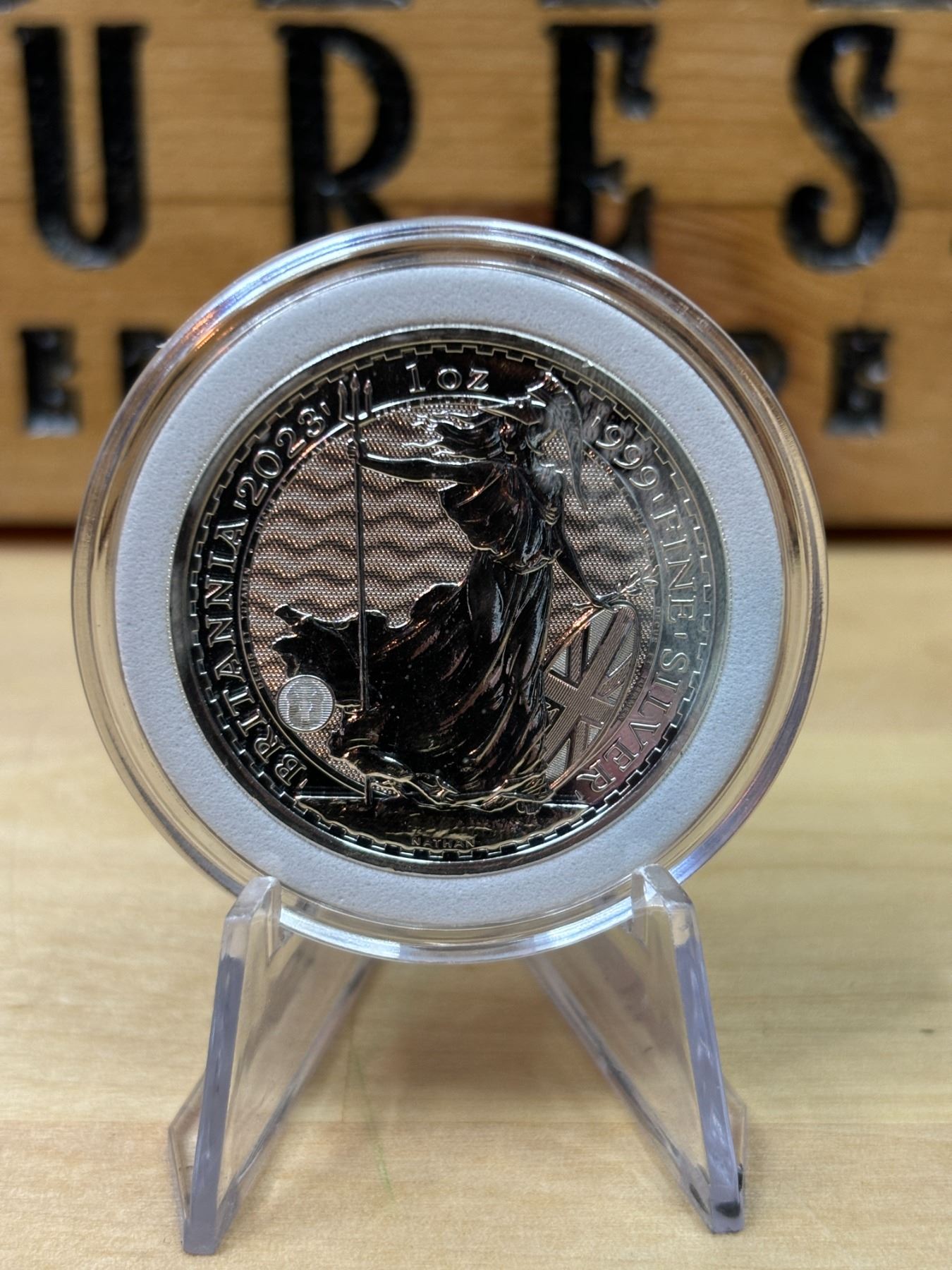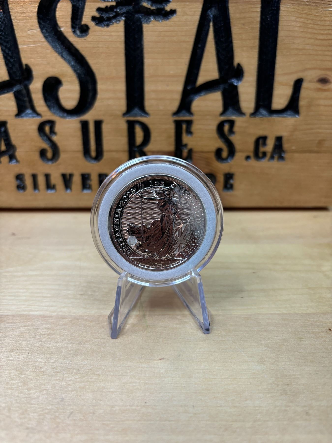 The 1 oz Britannia 2023 Silver Coin is part of the popular Britannia series, produced by the Royal Mint. It contains 1 ounce of .999 fine silver and features the iconic image of Britannia, symbolizing strength and resilience. The 2023 edition features an updated design with enhanced security features, such as a new background wave pattern and a holographic foil that changes in the light, making it more difficult to counterfeit. The coin is widely sought after by collectors and investors alike.
