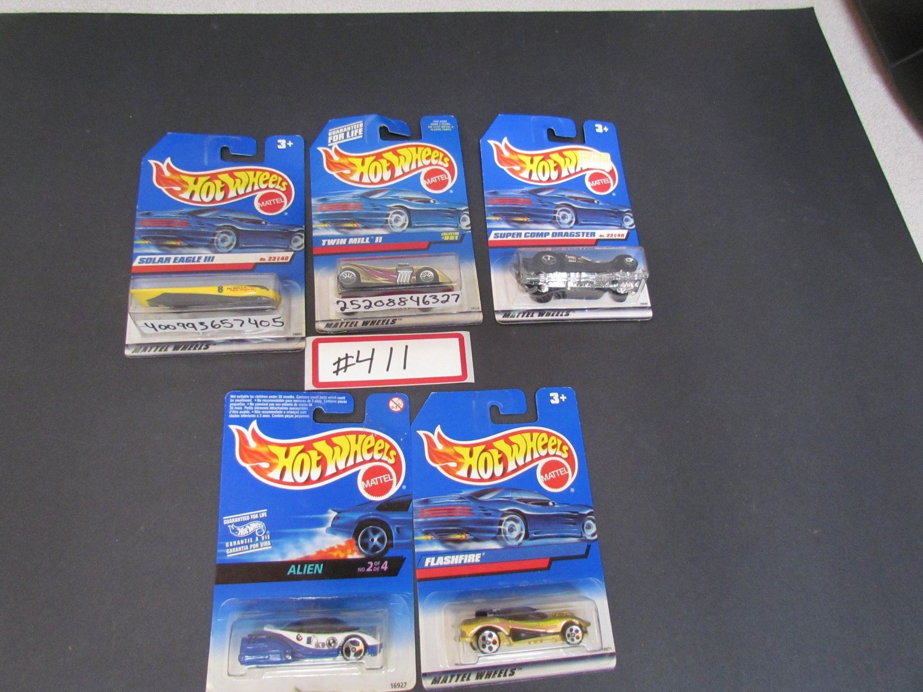 Lot #3- 5 Hot wheels Solar Eagle III, Twin Mill II, Stomp Comp Dragster,Alien, Flashfire