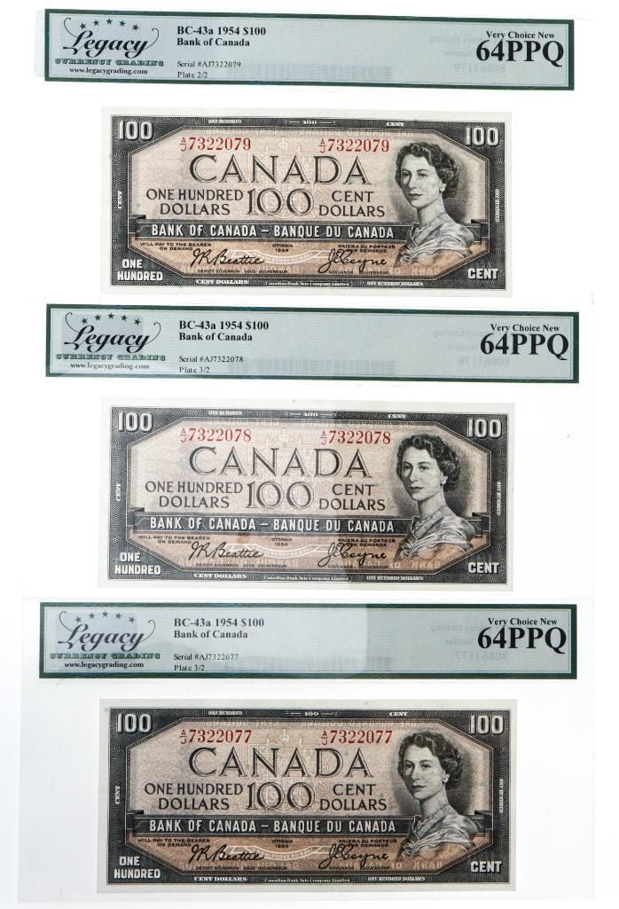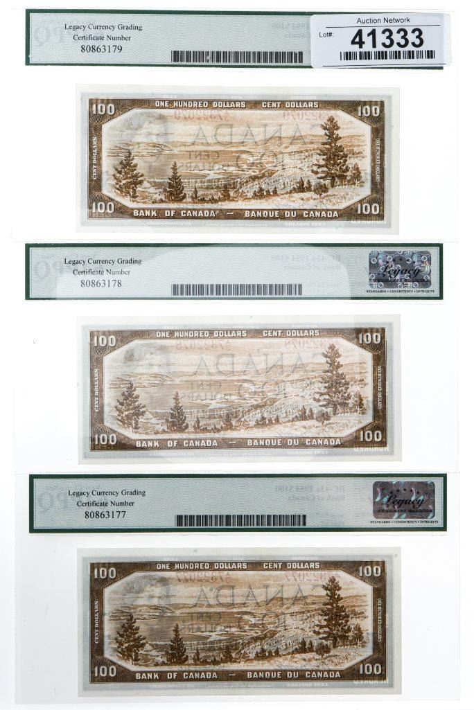 Lot 3 Bank of Canada, 1954 $100- Legacy Very choice 64 In Sequence