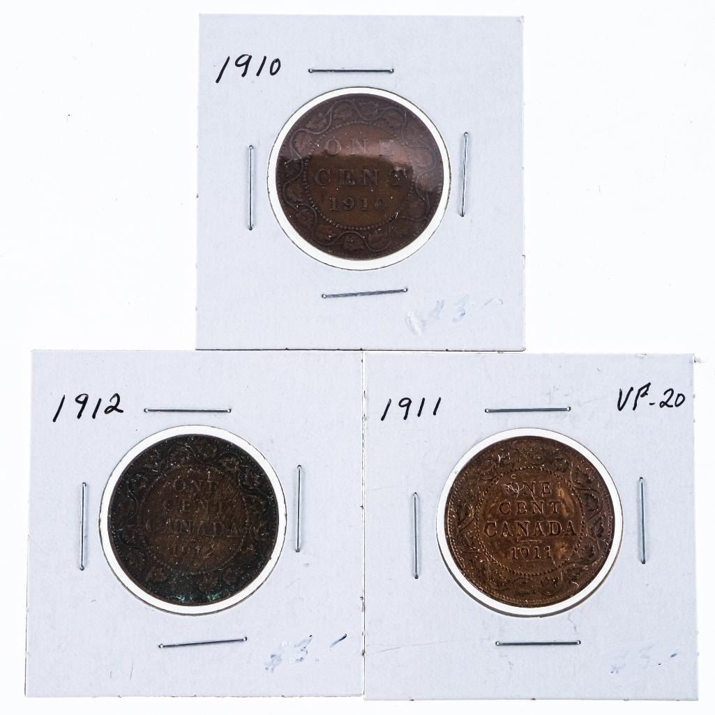 Lot 3 Canada Edward Large Cents - 1910,1911,1912