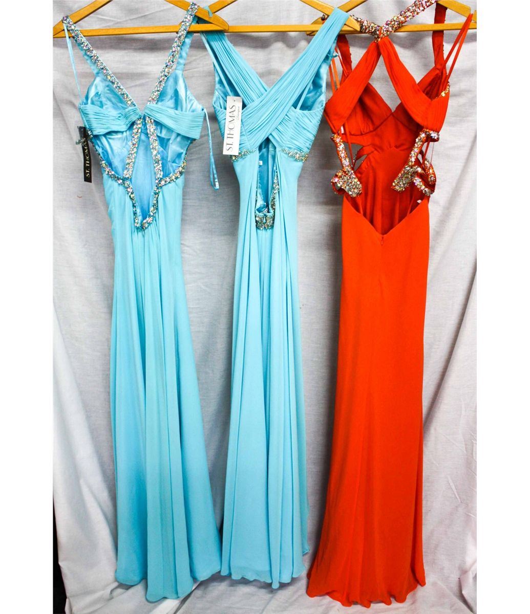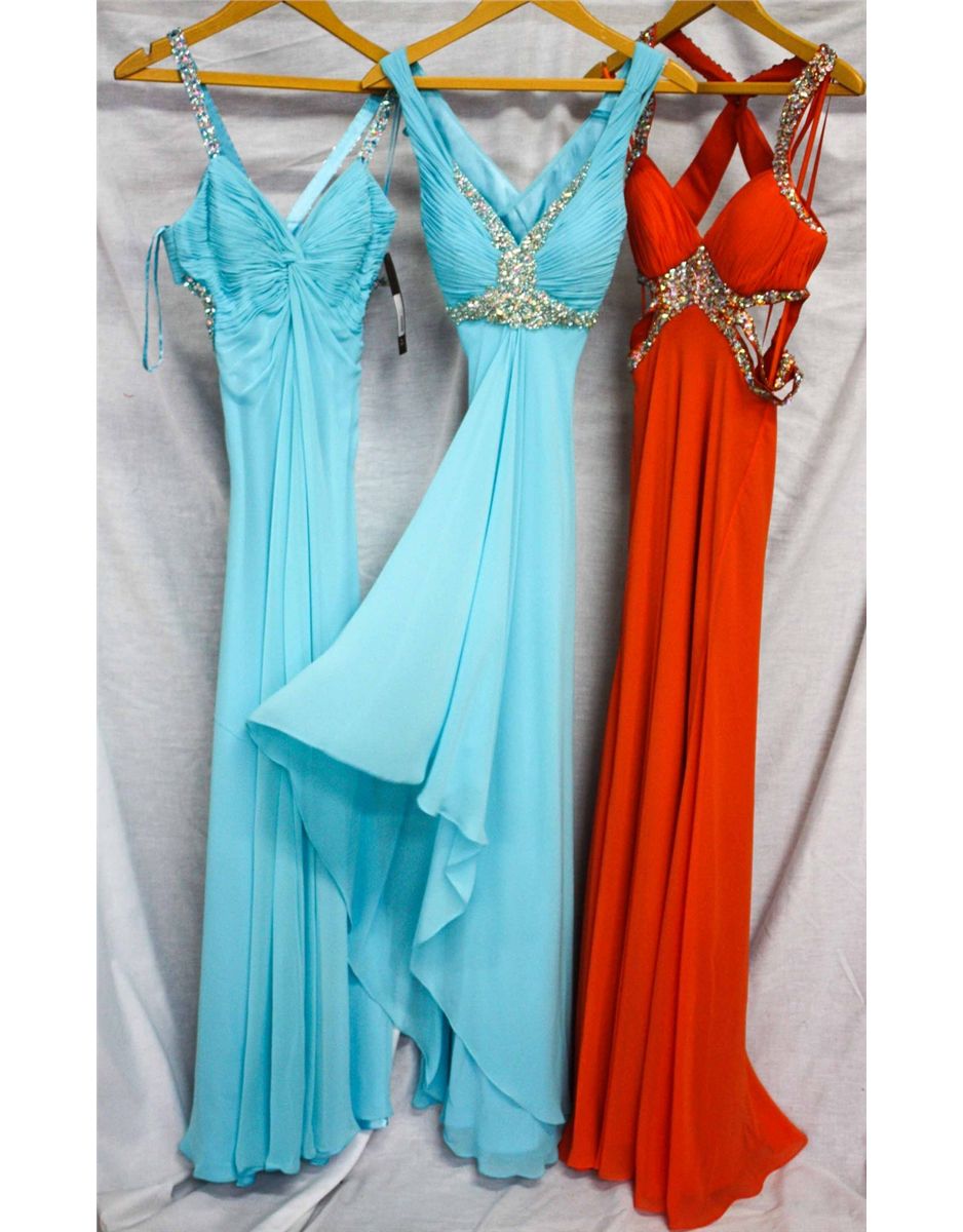 Lot [3] DRESSES: [1] Favaina blue dress, size 2, [1] Favaina cross back teal dress, size 2 and [1] Favaina tangerine color dress, size 2