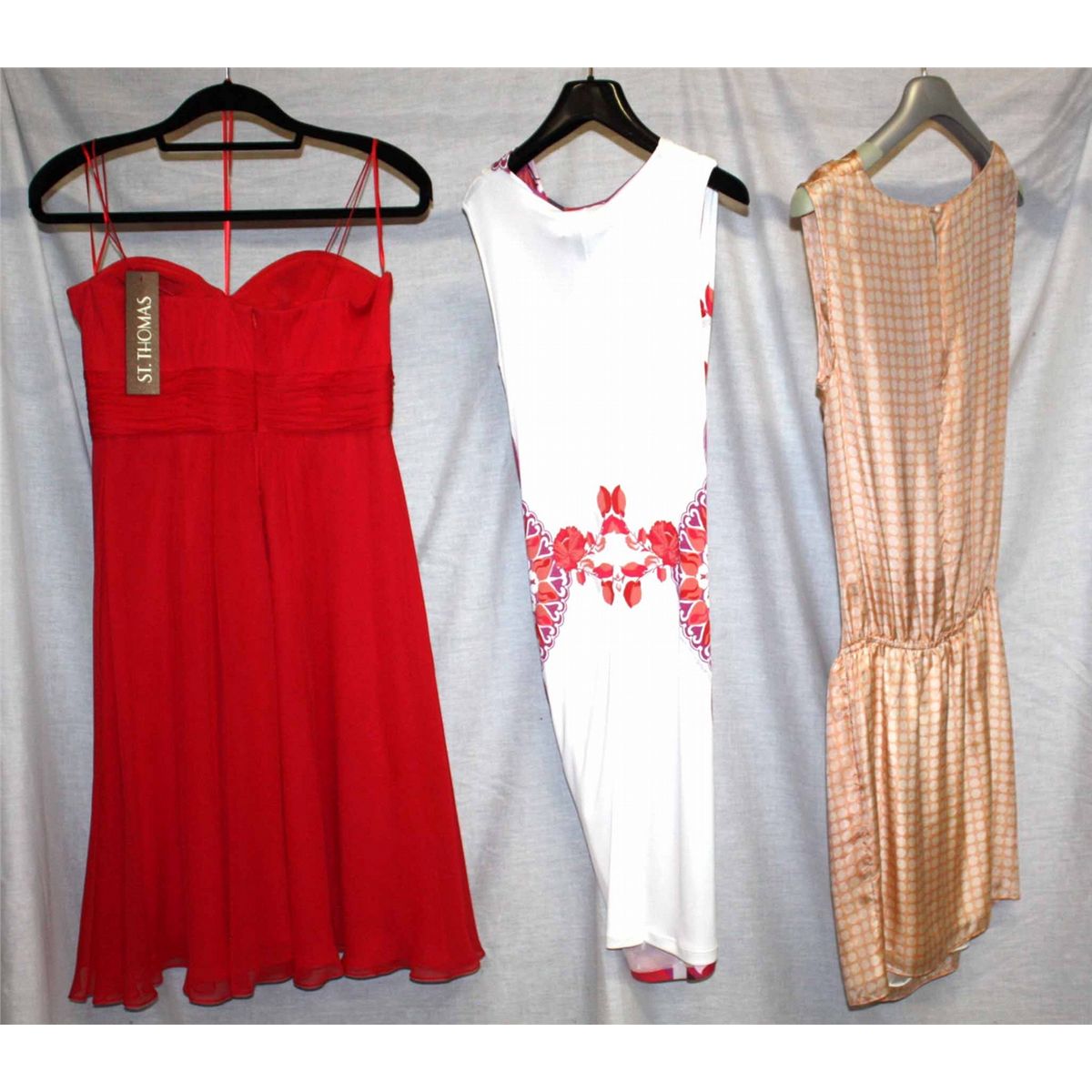 Lot [3] DRESSES: [1] Roberto Cavalli sleeveless print dress, size 6, [1] Hoss Intropia print dress, size 6 and [1] St. Thomas red dress, size 6