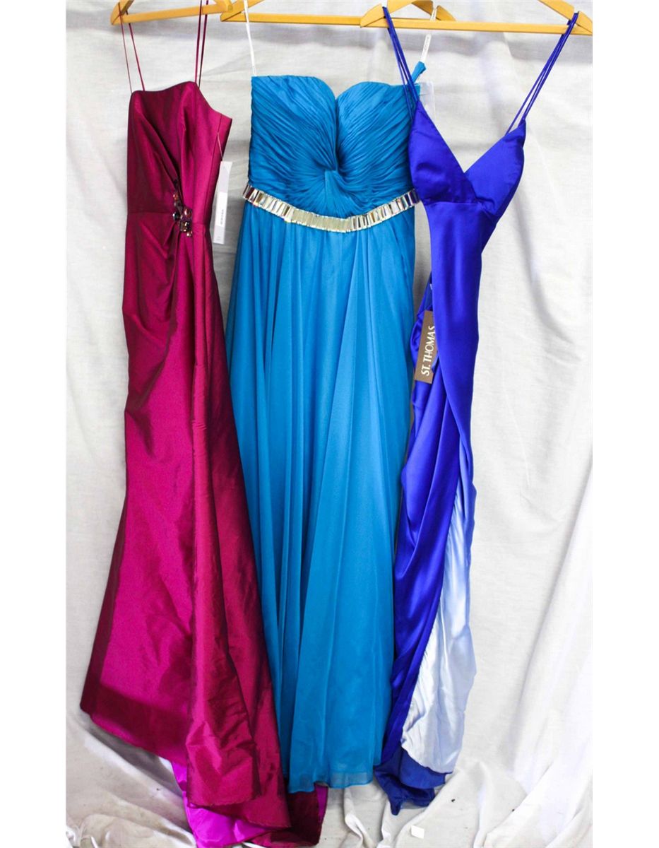 Lot [3] DRESSES: [1] Royal blue Yolanda spaghetti strap gown, size 8, [1] Jovani strapless twist and