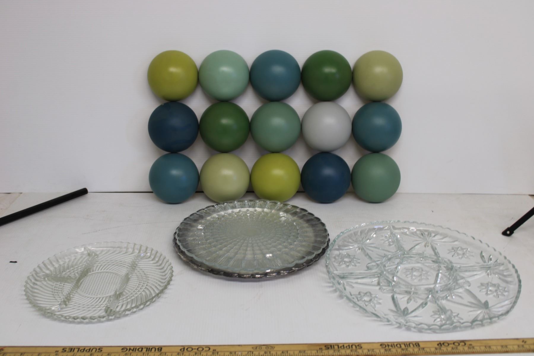 Lot: (3) Glass Serving Trays, (1) Silver Plated Platter, Ikea Wall Decor - 23" x 14"